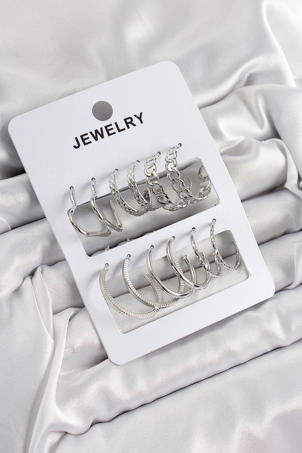 Pirinç Karışık Halka Model Gümüş Renk 6 Çift Kadın Küpe Set - Lisinya