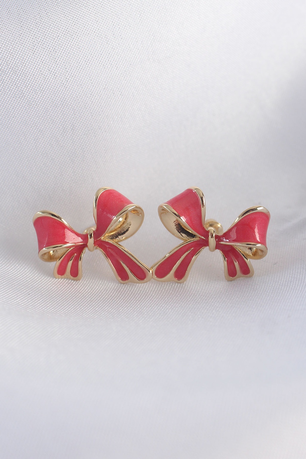 Pirinç Pembe Renk Fiyonk Küpe - Lisinya