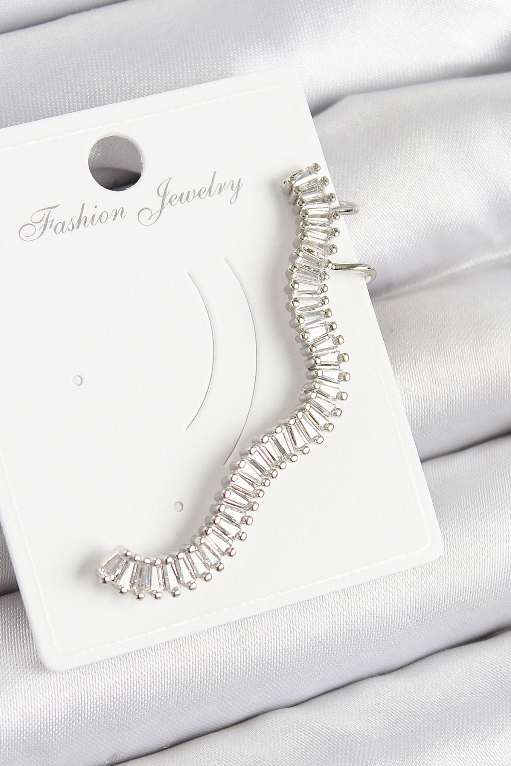 Pirinç Su Yolu Model Gümüş Renk Sağ Kıkırdak Küpe - Lisinya