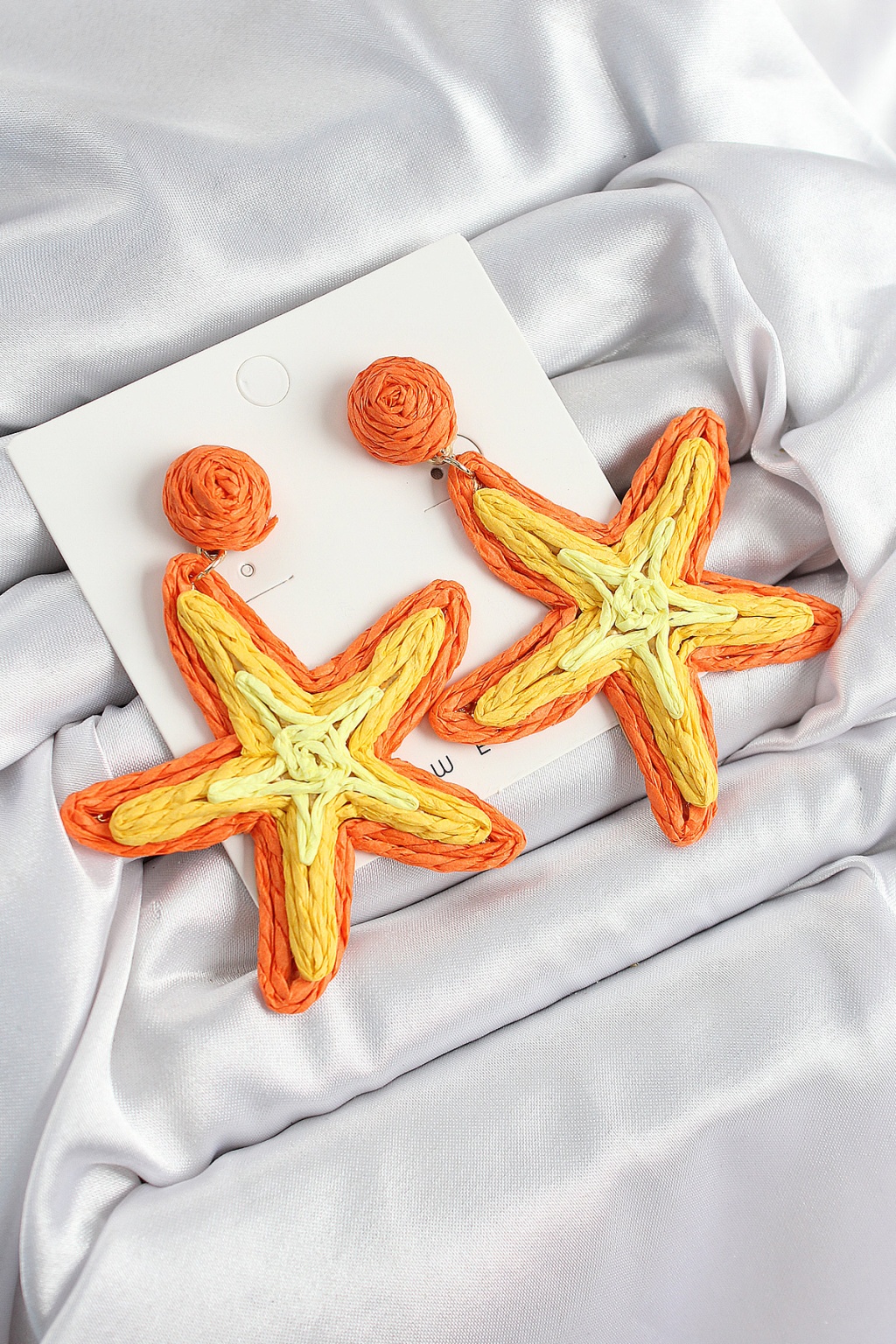 Pirinç Turuncu Deniz Yıldızı Model Gold Renk Kadın Hasır Küpe - Lisinya