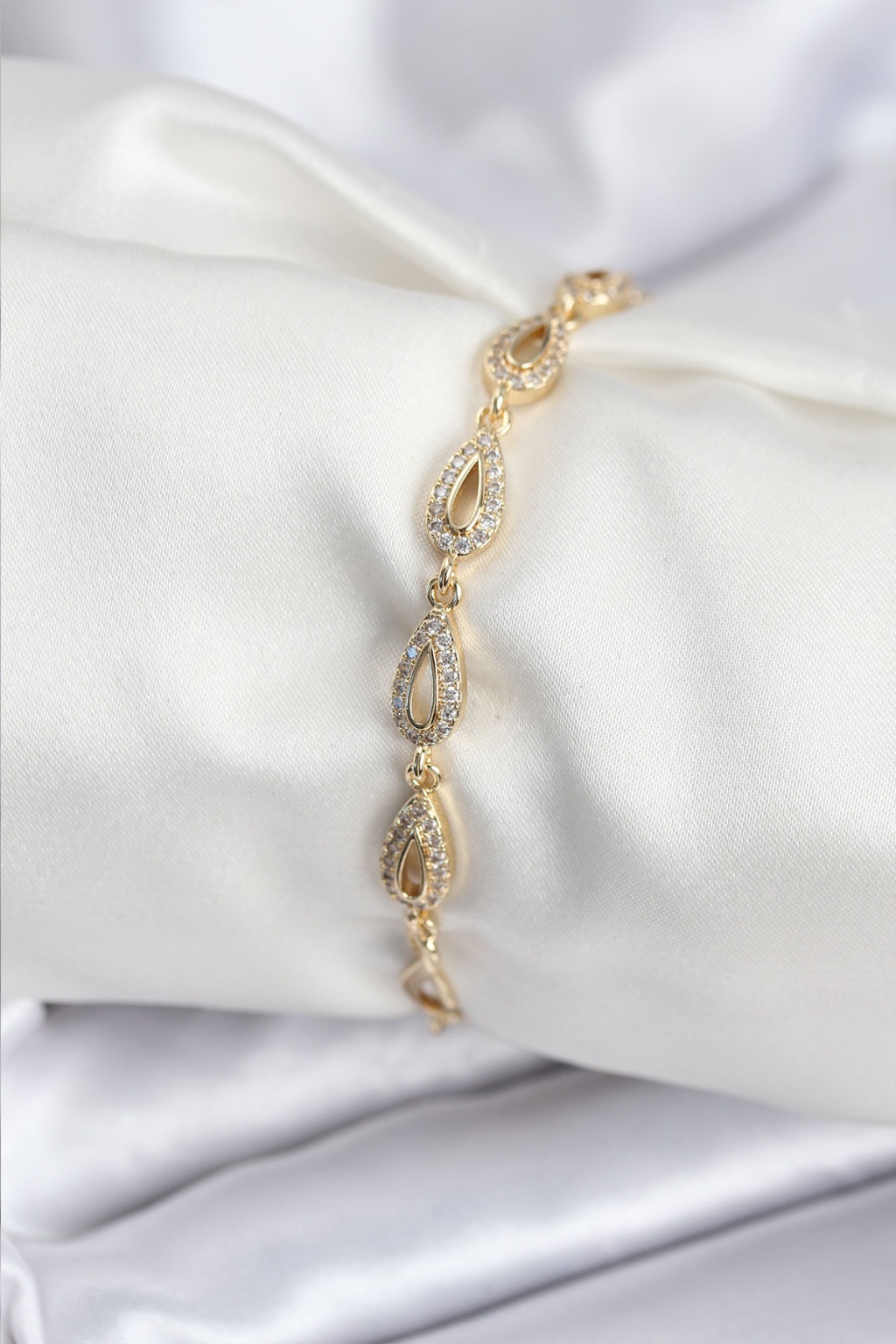 Pirinç VIP Seri Gold Renk Sıralı Damla Model Kadın Bileklik - Lisinya