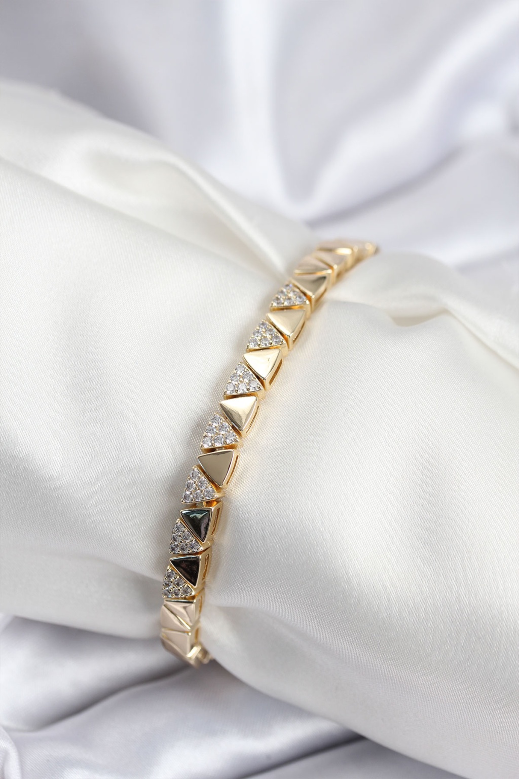 Pirinç VIP Seri Gold Renk Sıralı Üçgen Model Kadın Bileklik - Lisinya