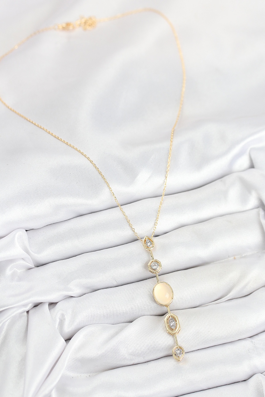 Pirinç Zincir Sarı Gold Renk Zirkon Taşlı Y Kolye - Lisinya