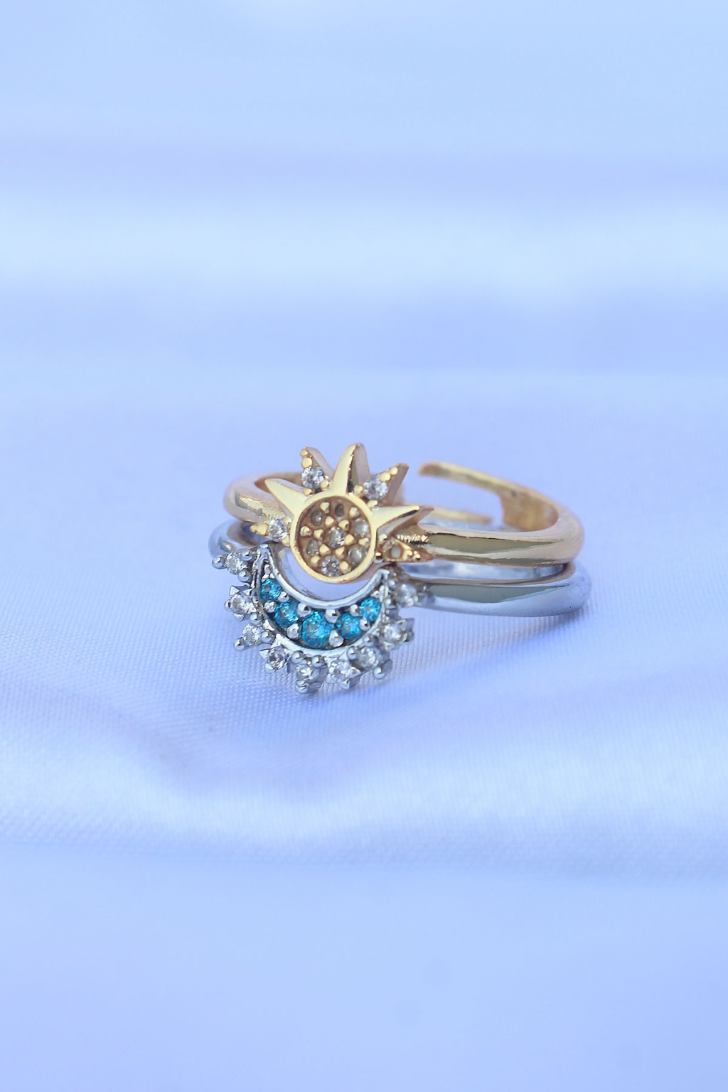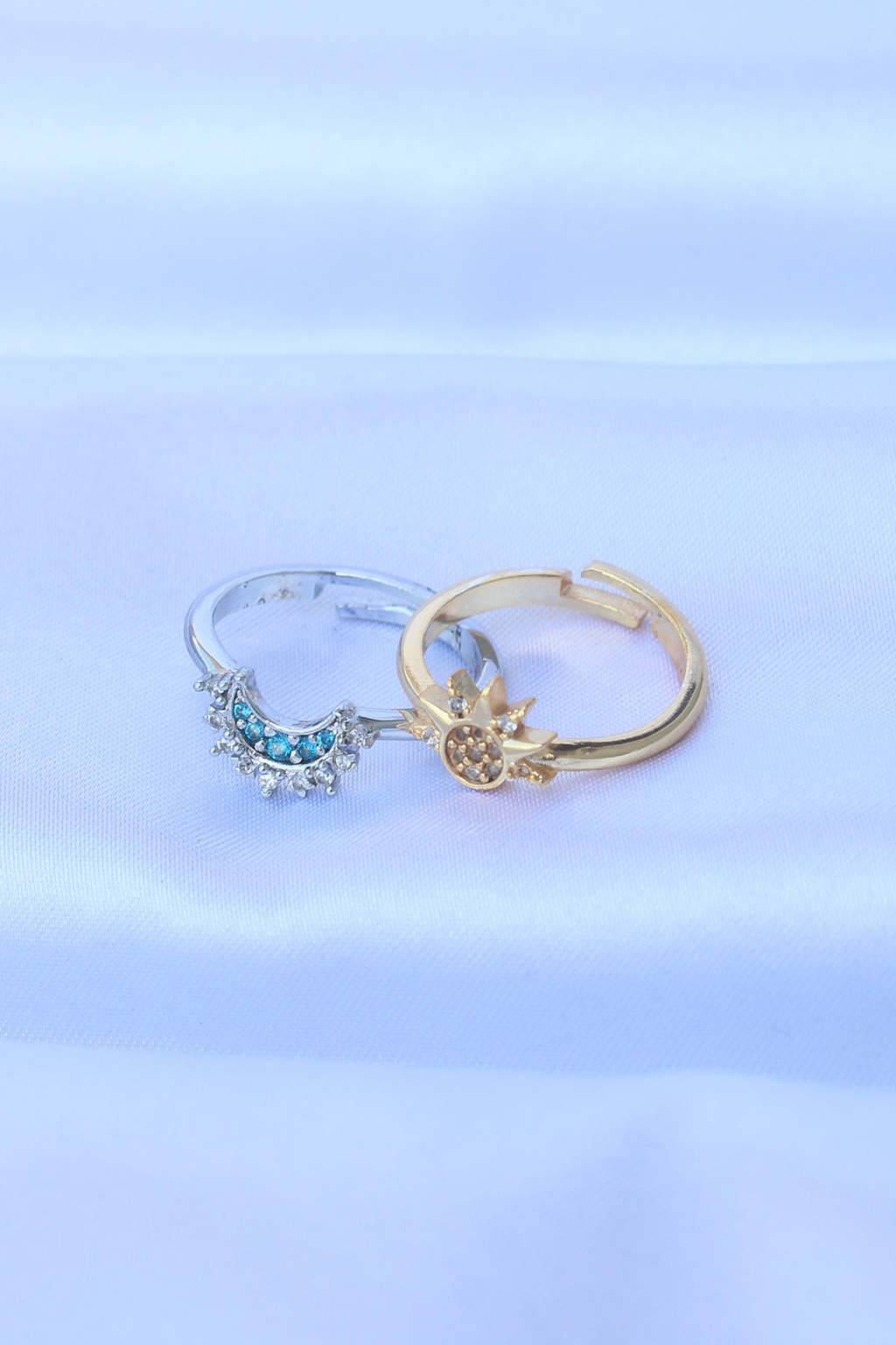 Pirinç Zirkon Taşlı 2li Ayarlanabilir Arkadaş Yüzüğü -