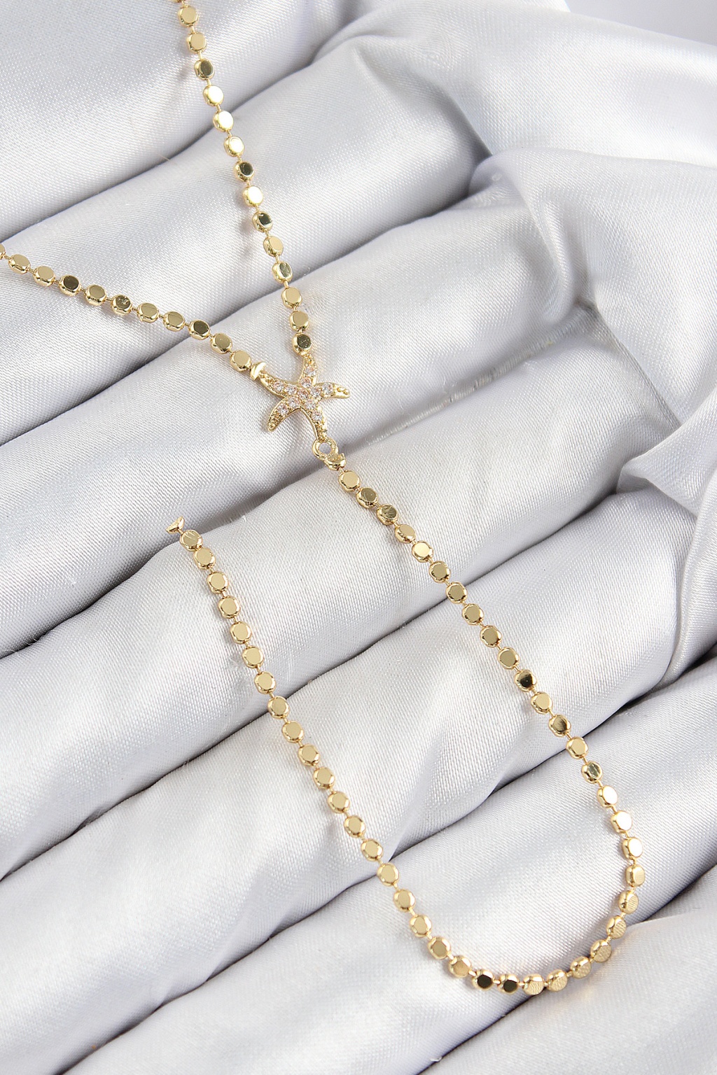 Pirinç Zirkon Taşlı Ezme Zincirli Deniz Yıldızı Model Gold Renk Y Kolye -