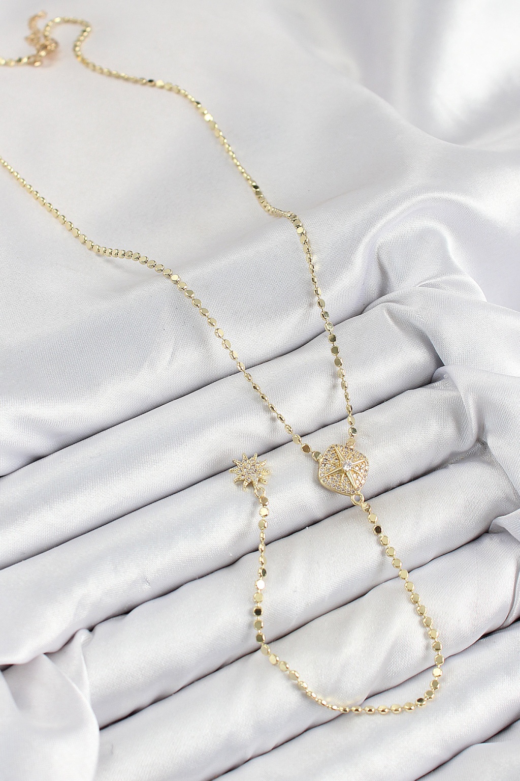 Pirinç Zirkon Taşlı Ezme Zincirli Madalyon Model Gold Renk Y Kolye -