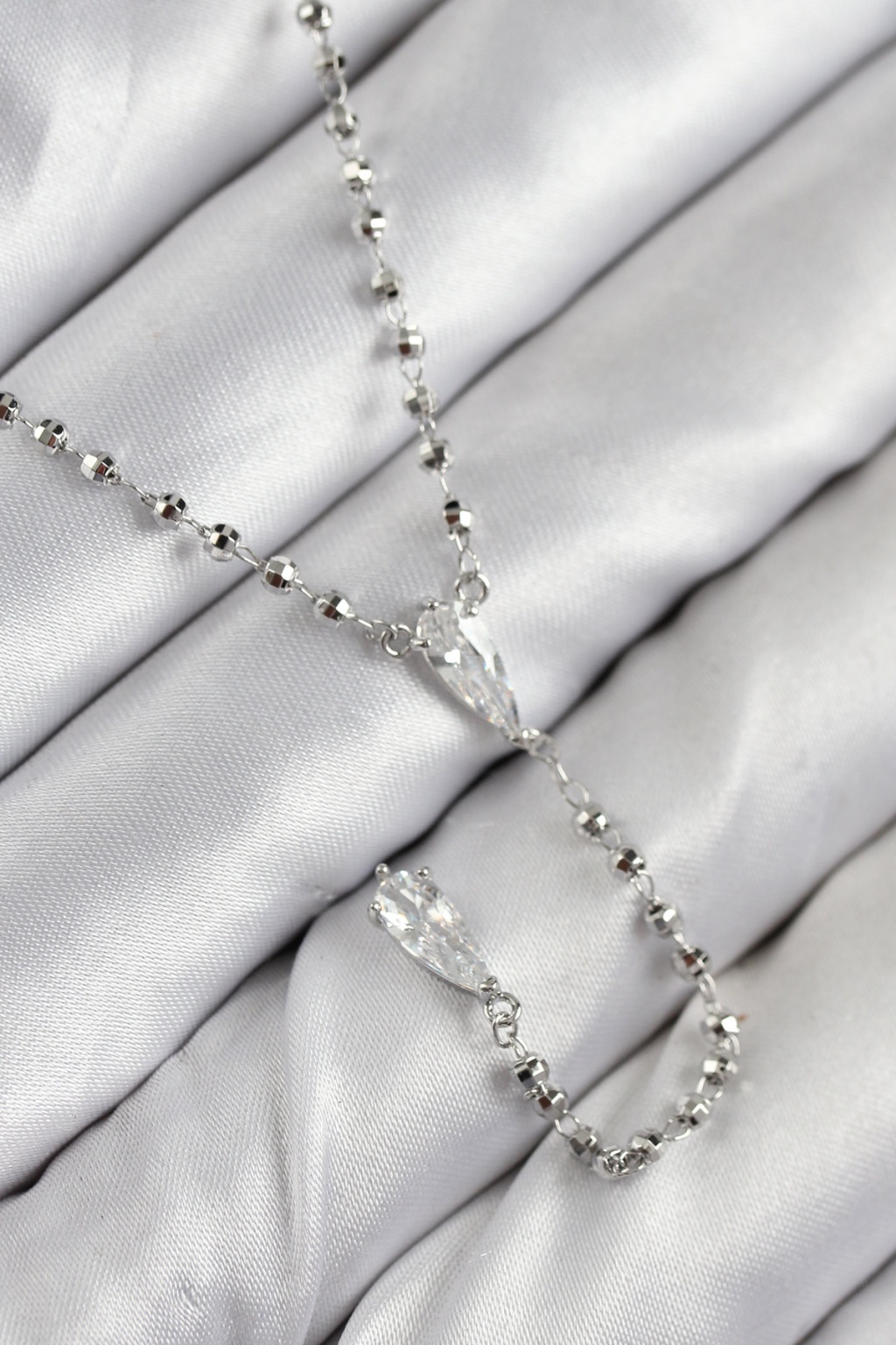 Pirinç Zirkon Taşlı Gümüş Renk Kadın Y Kolye -