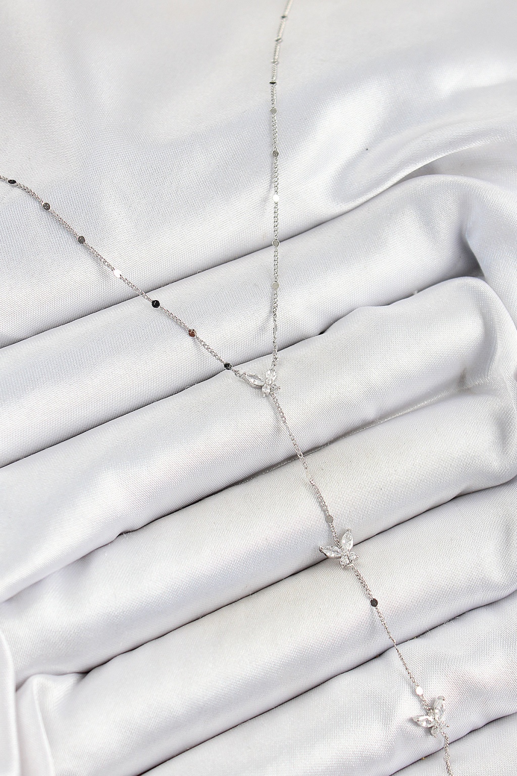 Pirinç Zirkon Taşlı Sıralı Kelebek Figürlü Y Model Gümüş Renk Kadın Kolye - Lisinya