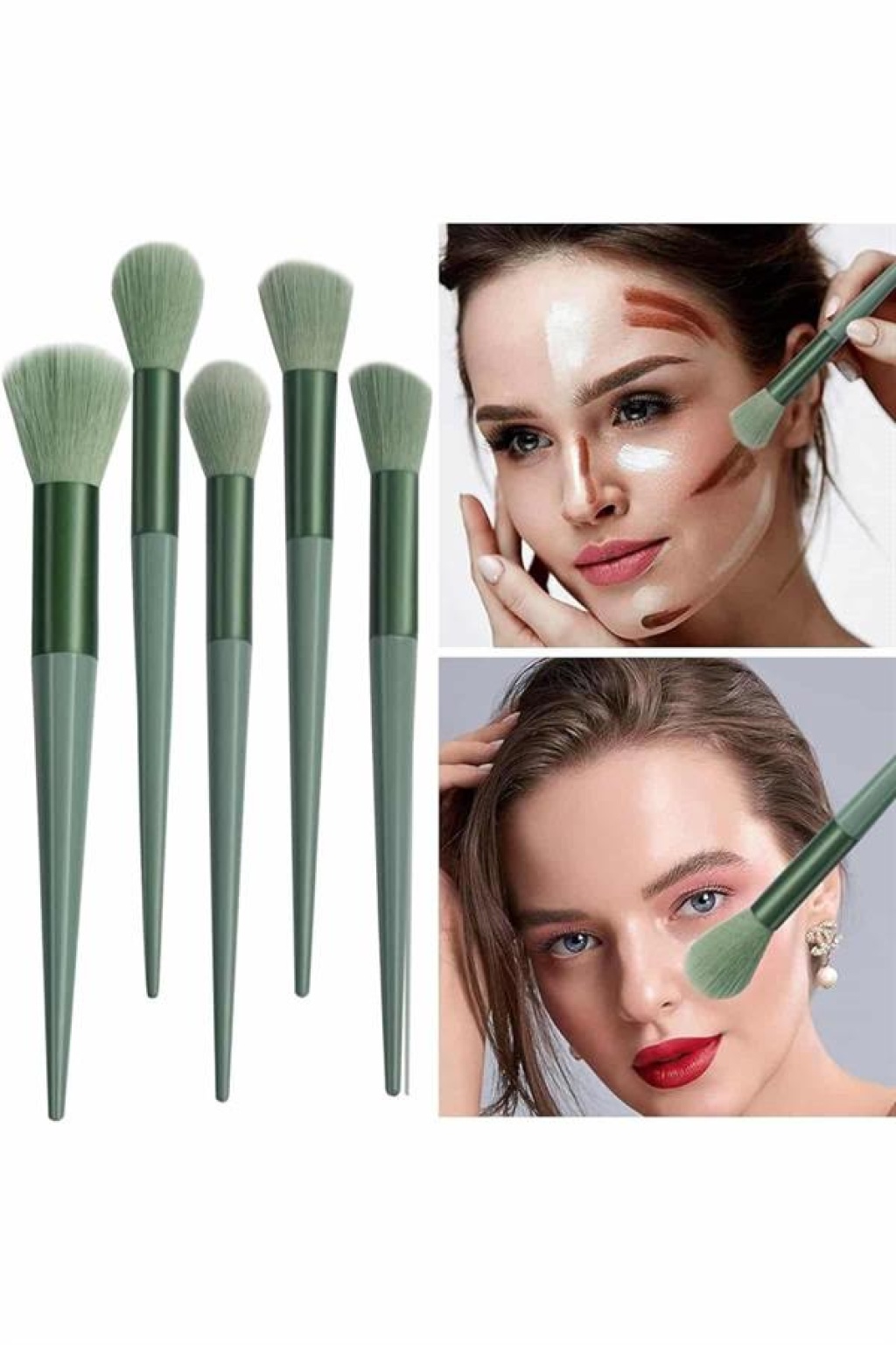 Makyaj Fırça Seti Yeşil 13 Parça Fondöten Fırçası Allık Fırçası Far Fırçası -