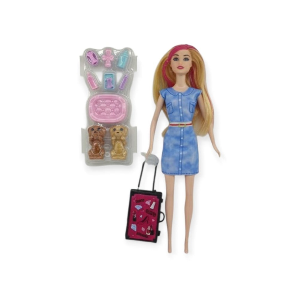 Puppy Bella 30 cm Bebek ve Köpek Bakım Seti - Mavi Elbise
