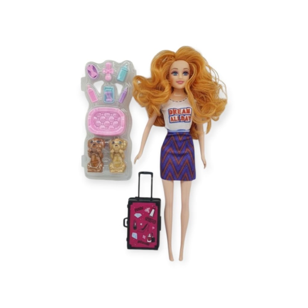 Puppy Bella 30 cm Bebek ve Köpek Bakım Seti - Mor Elbise