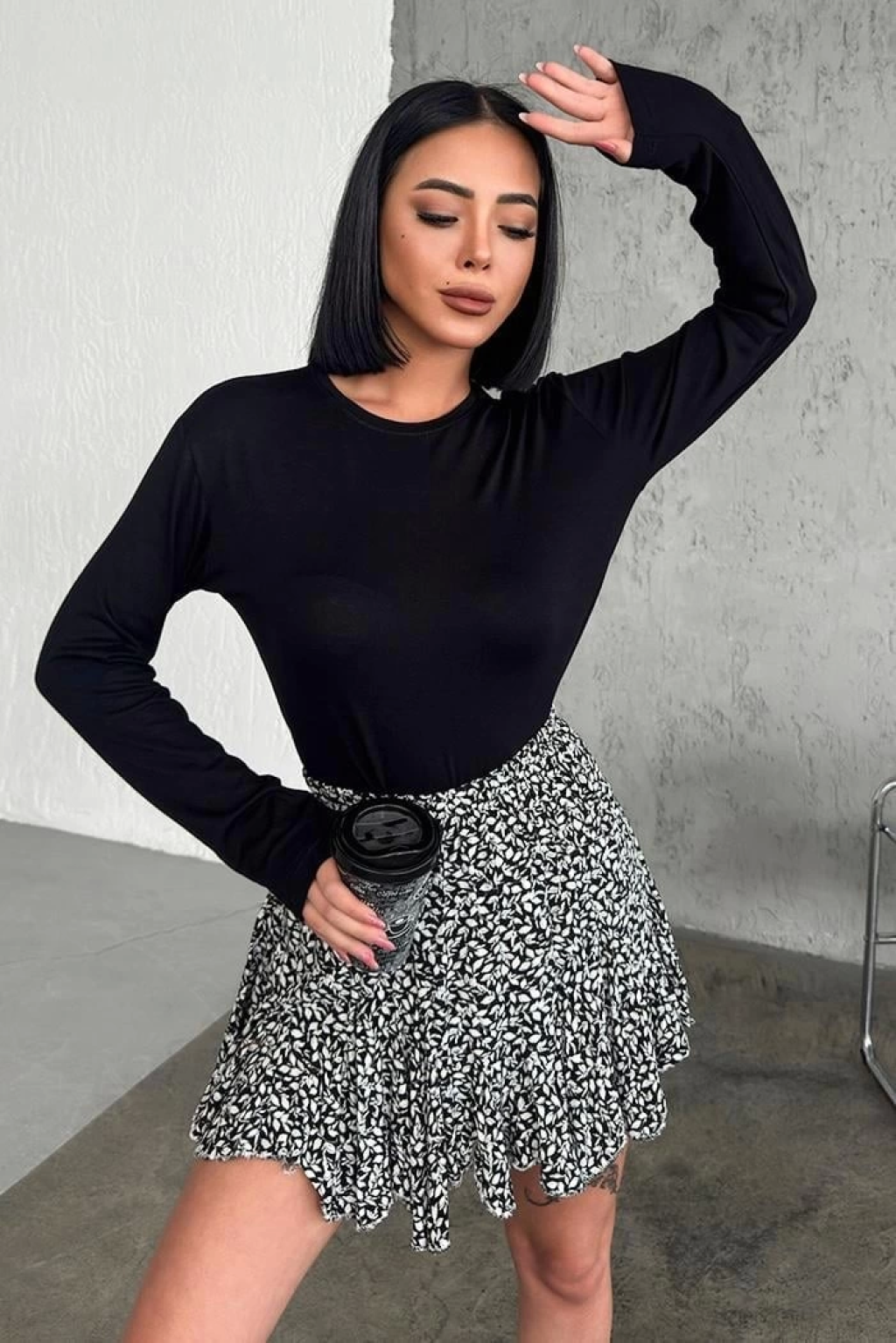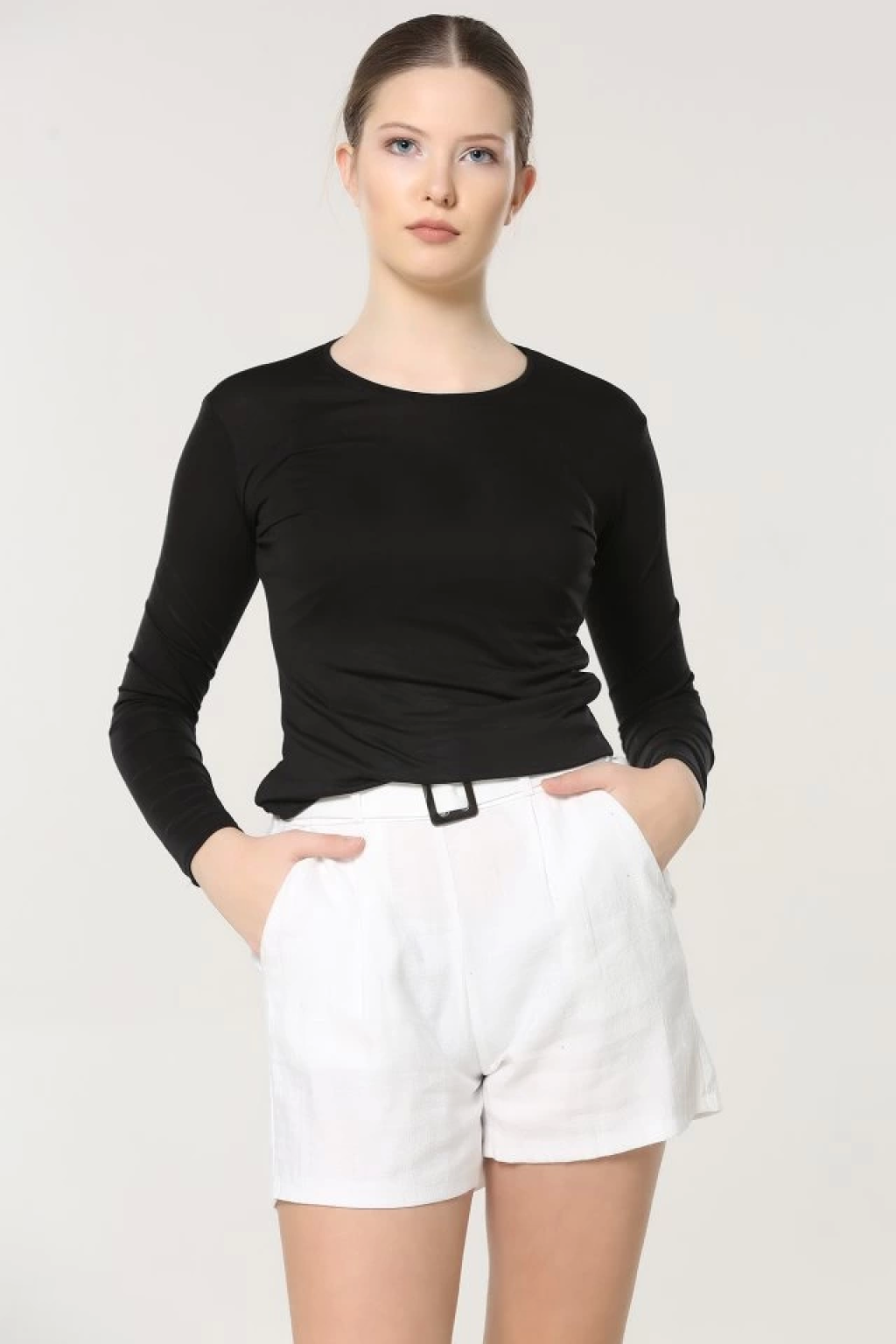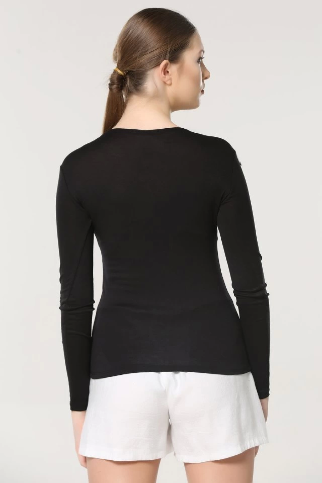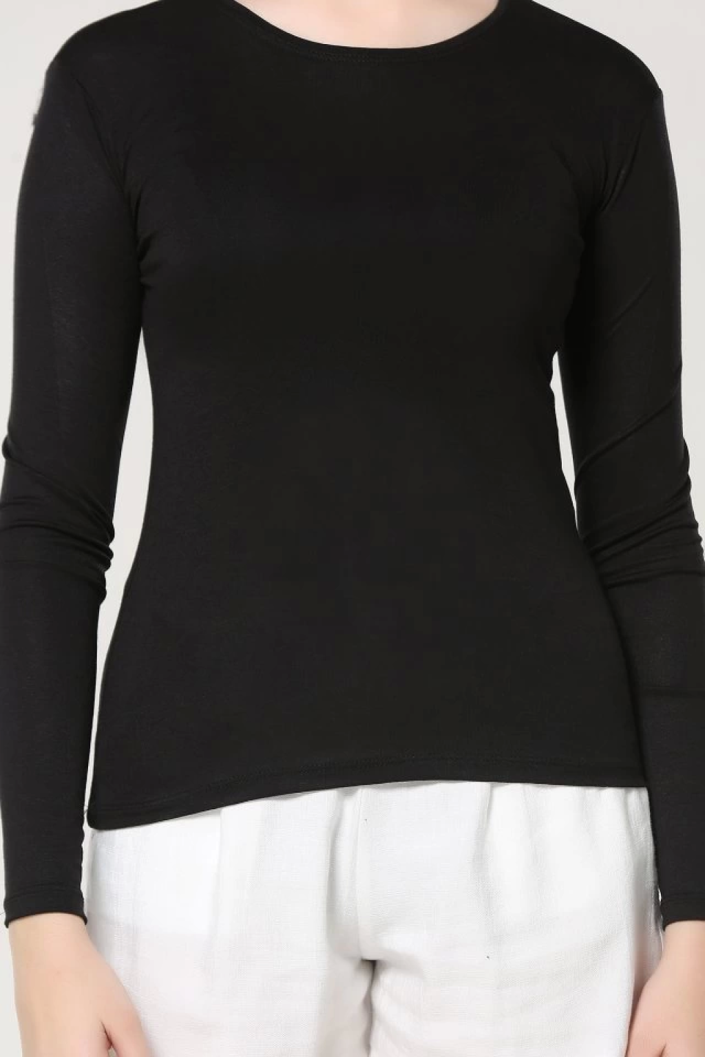 Rahat Ve Şık Uzun Kollu Bisiklet Yaka Likralı Viskon Penye Body Siyah