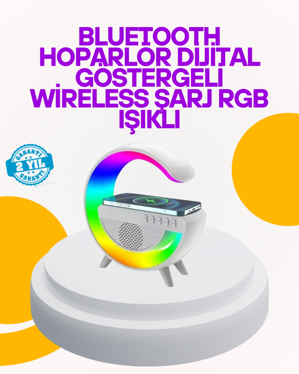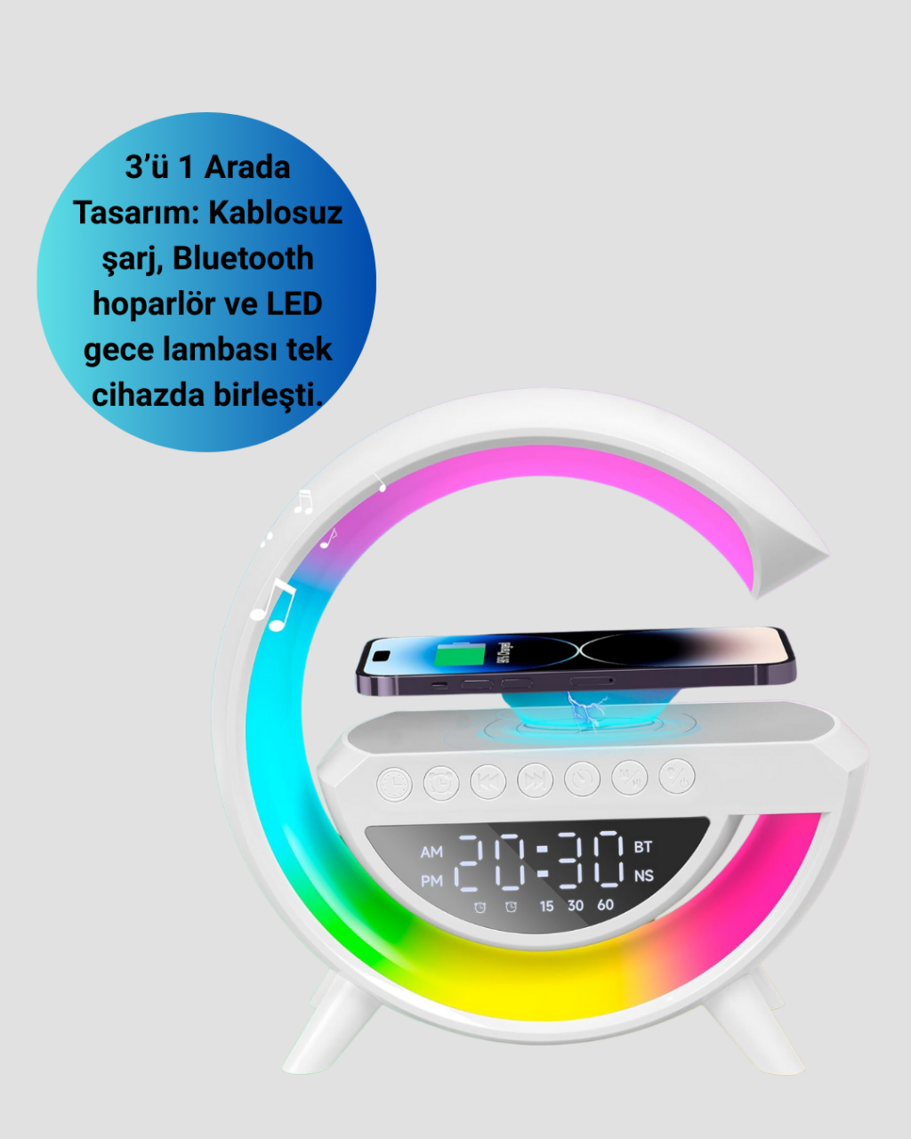 Renkli Işıklı 15W Kablosuz Şarjlı Masa Lambası -