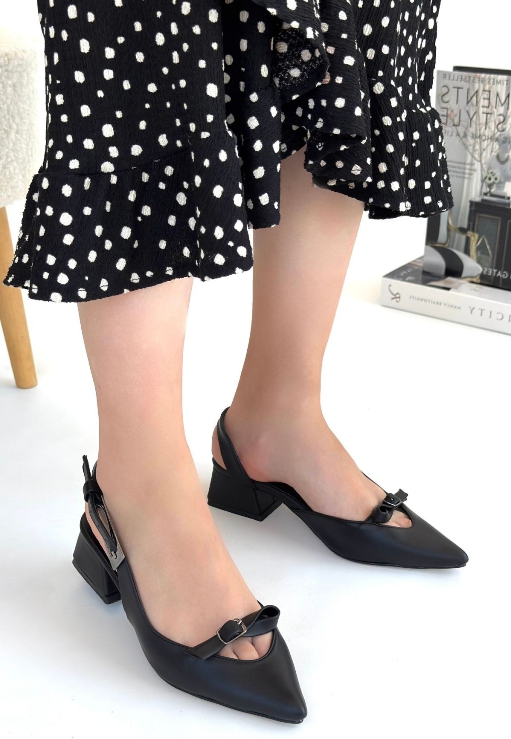 Renk: SiyahDetay: TopukluMalzeme: CiltTopuk Boyu: 3 CmTaban Materyali: Jurdan TabanKalıp: Standart Ayak Ölçülerine Göre Tam Kalıp.