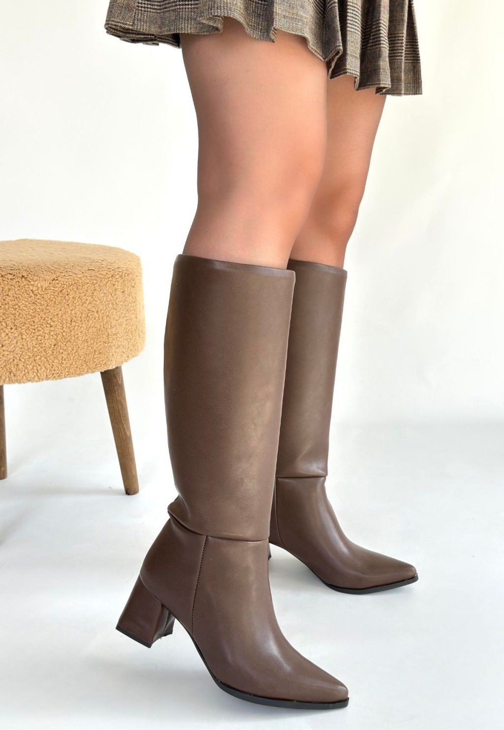 Roksa Acı Kahvei Cilt Topuklu Çizme - Lisinya