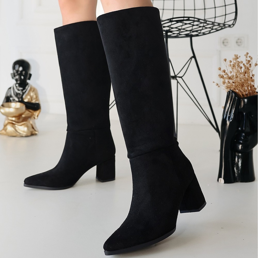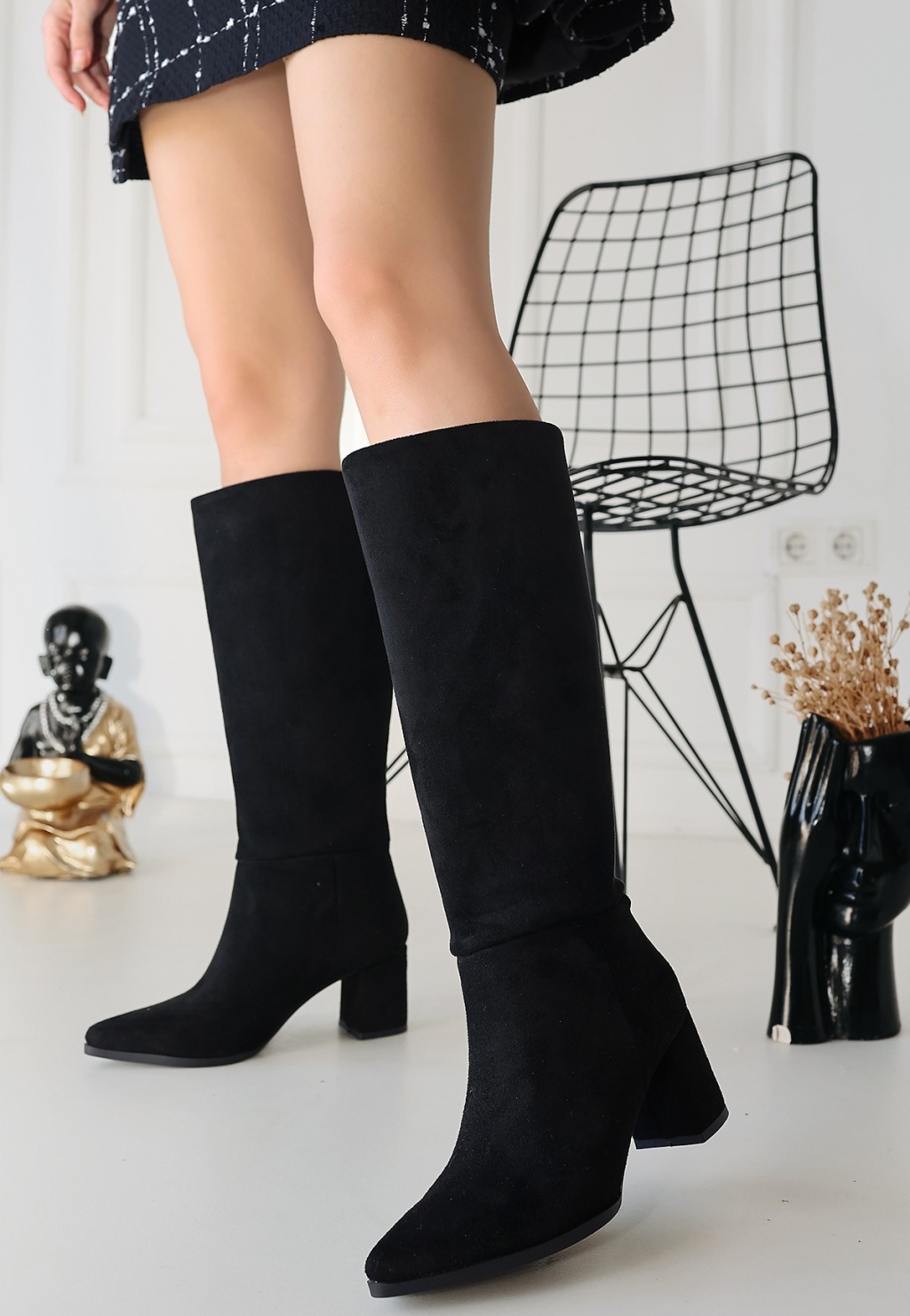 Roksa Siyah Süet Topuklu Çizme - Lisinya