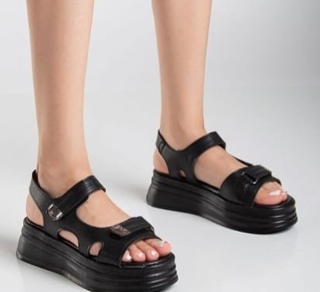 Saide Siyah Cilt Cırt Cırtlı Sandalet -