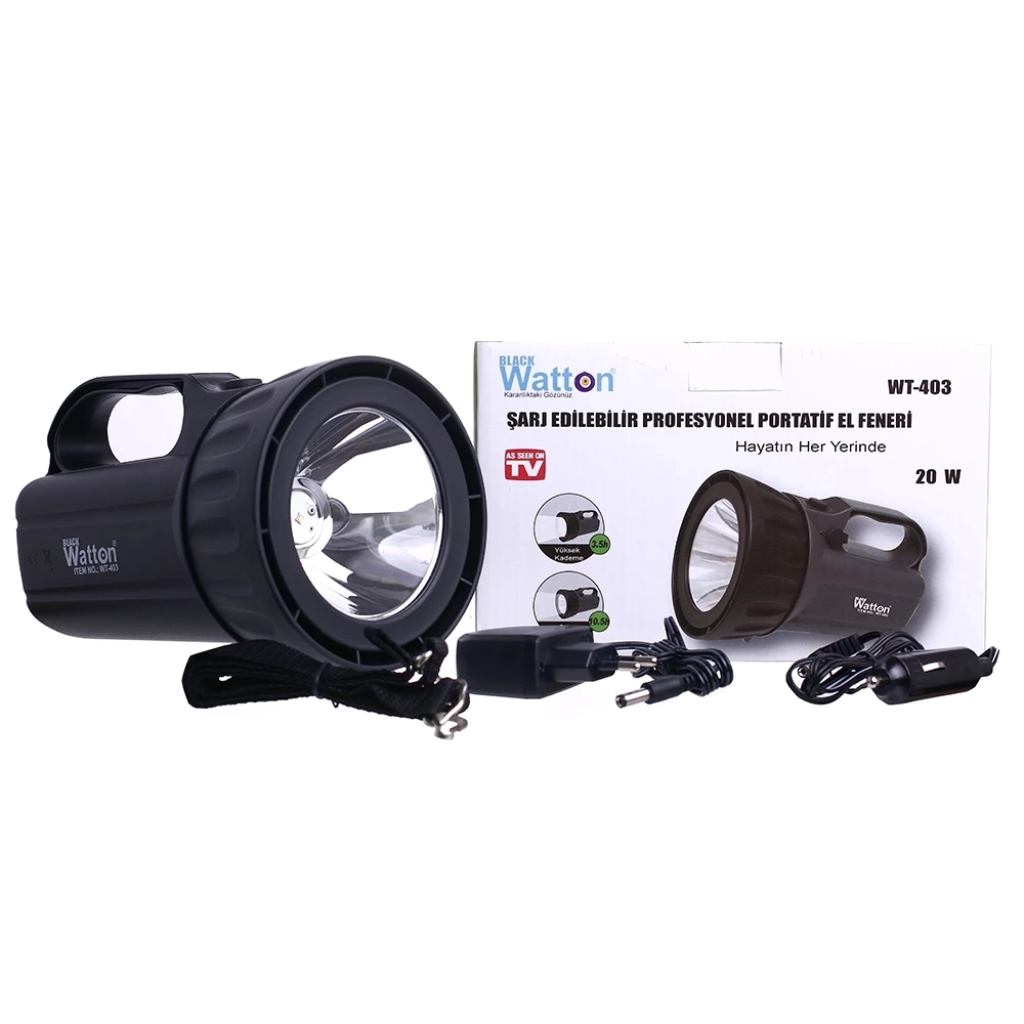 Marka nbsp nbsp nbsp nbsp nbsp nbsp nbsp nbsp nbsp nbsp nbsp nbspnbsp :BlackÜrün Kodu nbsp nbsp nbsp nbsp nbsp nbsp nbsp nbsp nbsp:Wt-403Boyutlar nbsp nbsp nbsp nbsp nbsp nbsp nbsp nbsp nbsp nbsp nbsp:22cm 13nbspcm 13 cmIşık Özelliği nbsp nbsp nbsp nbsp nbsp nbsp nbsp nbsp :Power Led 20 WnbspIşık Mesafesi nbsp nbsp nbsp nbsp nbsp nbsp nbsp :250nbsp- 350 nbspmt ( 1,000 Lümen )Işık Rengi nbsp nbsp nbsp nbsp nbsp nbsp nbsp nbsp nbsp nbsp: GüçlünbspnbspBeyazÇalışma Süresi nbsp nbsp nbsp nbsp nbsp :3,5- 6nbspnbsp SaatGövde Malzemesi nbsp nbsp nbsp:Sert PlastikKullanım Şekli nbsp nbsp nbsp nbsp nbsp nbsp:2nbsp modda Aydınlatma Orta,Yüksek,Kullanım Özellikleri nbsp :Elde ve Düz Zemine Sabitlenerek,nbspTeknik Özellikleri nbsp nbsp nbsp :Şarj Edilebilir Akü 220/240 Watt 50/60 Hz ( 4 V .3nbspAH )nbspKutu İçeriği nbsp nbsp nbsp nbsp nbsp nbsp nbsp nbsp :Ürün, Araç Çakmaklığı , Taşıma Askısı ,Şarj AdaptörüAmpül Ömrü nbsp nbsp nbsp nbsp nbsp nbsp nbsp:100.000 SaattirKullanım Yeri nbsp nbsp nbsp nbsp nbsp nbsp :Av, Kamp,Ev, Okul, Araba, Otel, RestorantTasarruflu Enerji Harcama ÖzelliğiÖnemli Uyarılar nbsp nbsp nbsp nbsp:Direk Göz İle Temas Ettirmeyinizİlk Kullanımdan Önce 12-18nbspsaat Şarj Ediniz.Şarj Edilebilir Profesyonel Portatif EL Feneri nbspWt-403 Kullanım KılavuzuÜrün Özellikleri1- nbsp nbspBu nbspÜründe Uzun nbspÖmürlü nbspAsidli Akü Kullanılmıştır .nbspYüksek Kapasiteli Uzun Ömürlü Kaliteli Plastik Malzeme Ürünümüzde Kullanılmıştır Ürünümüz Kalitelidir2- nbsp nbspButona Basınız nbspAç/Kapa Düğmesi İle Orta ve Yüksek Işık Elde Edebilirsiniz3- nbsp nbspReflektör Kupa Işığı Yüksek Güvenilir Uzak Mesafe Işığın Yansıtabilir. 500-600 Metrelik Mesafeyi Yakalar .nbsp4- nbsp nbspÜründe Kemer Kayışı Mevcut Olup Taşıma Kayışı İle Çok Rahat TaşıyabilirsinizKullanım Direktiflerinbsp1 – Ürünü Şarj Ettiğiniz Zaman Off Konumuna Yani Kapalı Konumuna nbspGetiriniznbsp2 – AC220-240V /50-60 Hz Güç Kablosunu Prize Takınız. Ve 12 Saat Tam Şarj Ediniz3- Ürünü İlk Kullanımdan Önce nbsp12-18 Saat Arası Şarj Ediniznbsp4-Akü: 4V . 5,5 AHnbsp5 - Boyutlar : 22 cm 13 cm 13 cm6-12v Oto Şarj KablosuUyarılar 1- nbsp nbspÜrünün Uzun Ömürlü Olmasını İstiyorsanız Lütfen Ürünü Zamanında Şarj Ediniz.nbspAksi Taktirde Ürüne Zarar Vermiş Olup Pil Ömrünü Azaltmış Olursunuznbsp2- nbsp nbspÜrünü Normal Zamanda Ve Şarj Ederken Sıcaklık Önünde kalorifer nbspveya Yakın Yerlerde Şarj Etmeyiniz3- nbsp nbspLed Lambaları Güçlü Olduğu İçin Lütfen Göz İle Direk Temas Ettirmeyiniz.nbspAksi Taktirde Göze Zarar Vermiş Olursunuz4- nbsp nbspEn Fazla Şarj Süresi 20 Saatir Lütfen 20 Saatten Fazla Ürünü Şarj Etmeyiniz5- nbsp nbspEğer Ürünü Uzun Zaman Kullanamayacaksanız Lütfen 1 Ayda Bir Mutlaka Ürünü Şarj Ediniz6- nbsp nbspLütfen Kullanma Kılavuzunu Okuduktan Sonra Ürünü Kullanınız,nbspÜrün Arızalandığı Zaman Kendiniz Tamir Etmeye Çalışmayınız En Yakın Yetkili Servise Tamire GötürünüznbspAksi Taktirde Ürüne Ve Kendinize Zarar Vermiş Olursunuznbsp ŞARJ EDİLEBİLİR PROFESYONEL PORTATİF EL FENERİWT-403Portatif el fenerleri , yüksek ışık veren lambalardır. Doğa şartlarının sert olduğu noktalarda büyük el fenerleri kullanılır. Yağmur, rüzgâr gibi stadyum şartlarında fenernbspkullanımı yaygındır. Bunun yanında yüksek sıcaklıklara dayanabilen yapıları vardır. büyük el fenerleri çevreye uyumlu bir yapısı bulunuyor. Özellikle zorlu çevre ve hava koşulları için tasarlanmış fener bu konuda oldukça gelişmiş bir yapıya sahiptir. Özellikle aşırı rüzgârlı, karlı ve yağmurlu hava şartları için seçilmiş kaftandır. Bahçe, park, stadyum, halı sahalar, organizasyonlar gibi birçok noktada büyük el fenerlerinbspaydınlatma sistemleri kullanılır. Bu aydınlatma sisteminin özellikleri neticesinde kullanım alanı oldukça yaygınlaştı.Portatif el fenerlerinbspaydınlatmaları bahçe gibi ortamlarda kullanıldığı zaman daha uzun süreli dayanıklılık gösteriyor. Daha çok büyük bahçelerin aydınlatılmasında kullanılan bu sistem, oldukça avantajlı olur. Çünkü bu aydınlatma mamulü oldukça yeterli ışık sağlar ve bunu düşük enerji kullanımı ile yapıyor. Bahçe ve sahalarda, köprü ve köprü altı tünellerde, spor sahaları, halı saha ve stadyumlarda, liman, tren istasyonu ve otobüs terminallerinde, askeri tip arazi aydınlatmalarında ve daha sayısız alanda kullanılmaktadır. Orta ve Yüksek olmak üzere 2 modda çalışmaktadır. Oto şarj cihazı ve taşıma askısı ile kolaylıkla kullanabilirsiniz.Ana ÖzelliklerBoyutu 22cm 13cm 13cm'dir. Şarj edilebilir Akü 220/240 Watt 50/60 Hz (4V.3AH) ile şarj edilir. Ampul ömrü 100.000 saattir. Tasarruflu enerji harcama özelliği ile uzun süre kullanabilirsiniz. İlk kullanımdan önce 12-18 saat şarj ediniz.. Ürün Markası: Lisinya