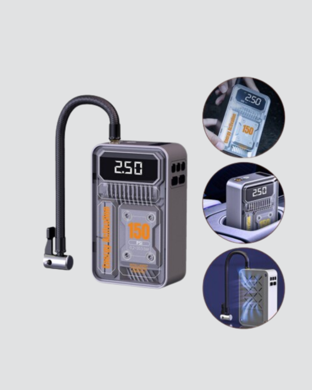 Şarjlı Kablosuz Hava Pompası – 150 PSI Basınç, LED Ekran ve 6000mAh Batarya -