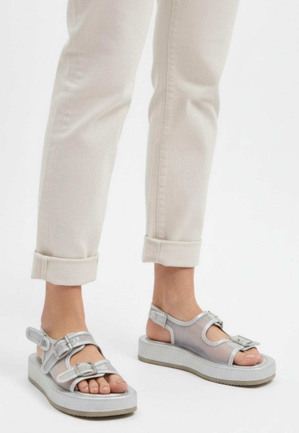 Sinna Gümüş Cilt Tül Detaylı Sandalet -