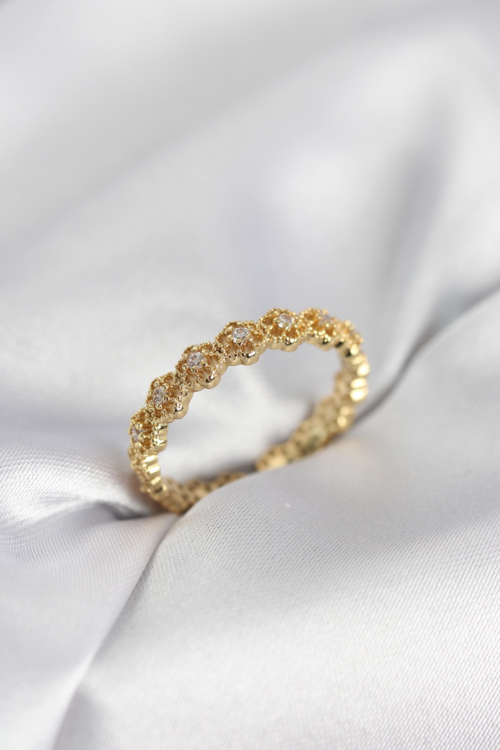Sıralı Çiçek Model Gold Renk Zirkon Taşlı Kadın Yüzük - Lisinya