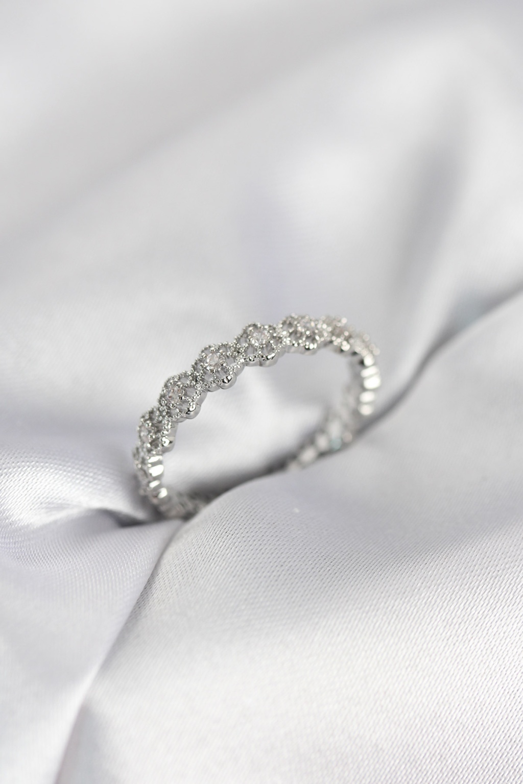 Sıralı Çiçek Model Gümüş Renk Zirkon Taşlı Kadın Yüzük - Lisinya