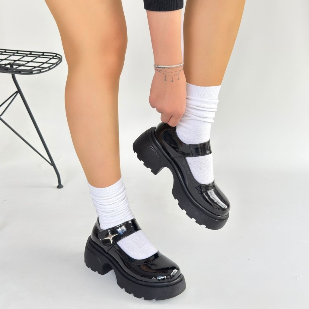 Siyat Siyah Rugan Dolgu Topuk Oxford Ayakkabı - Lisinya