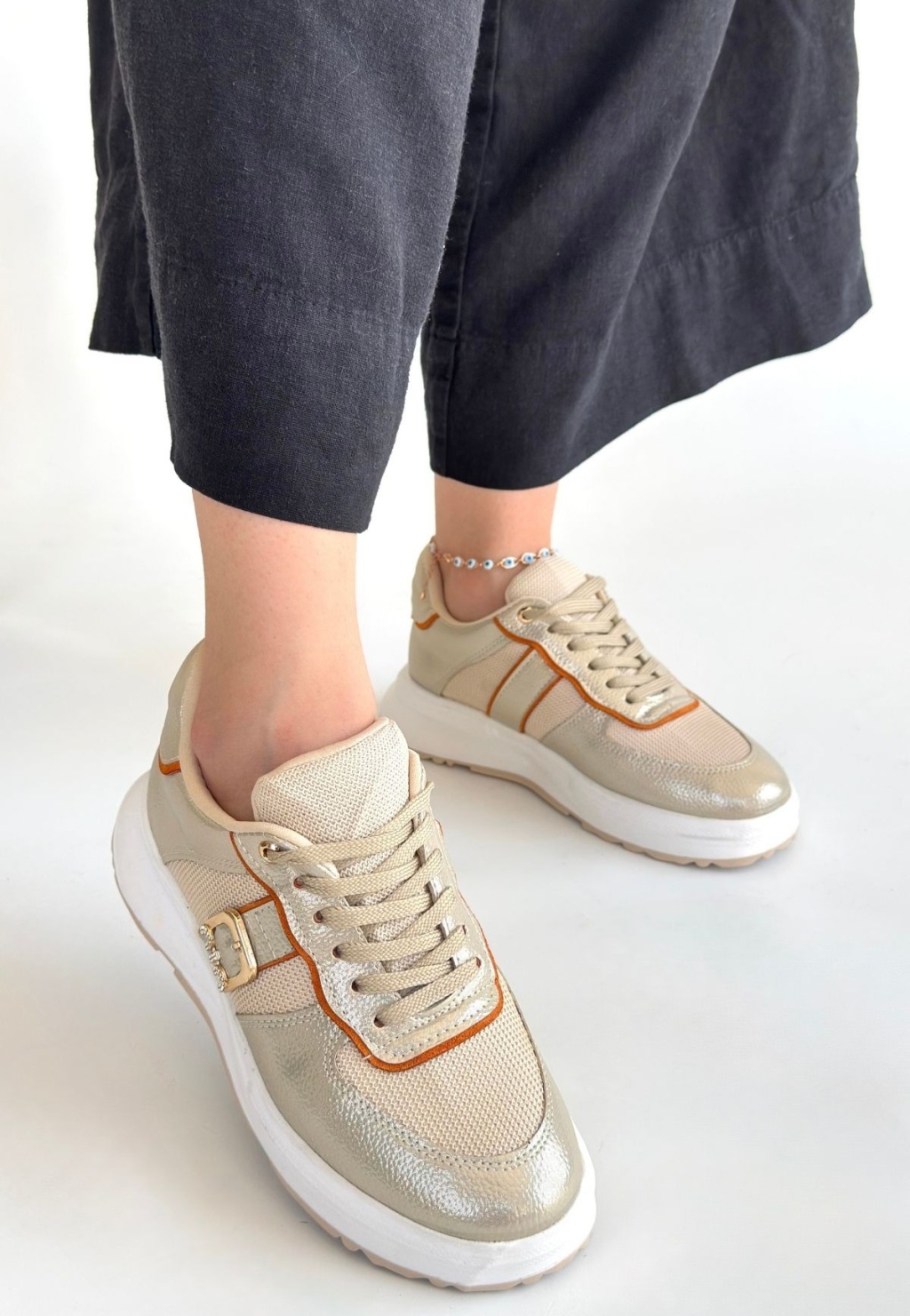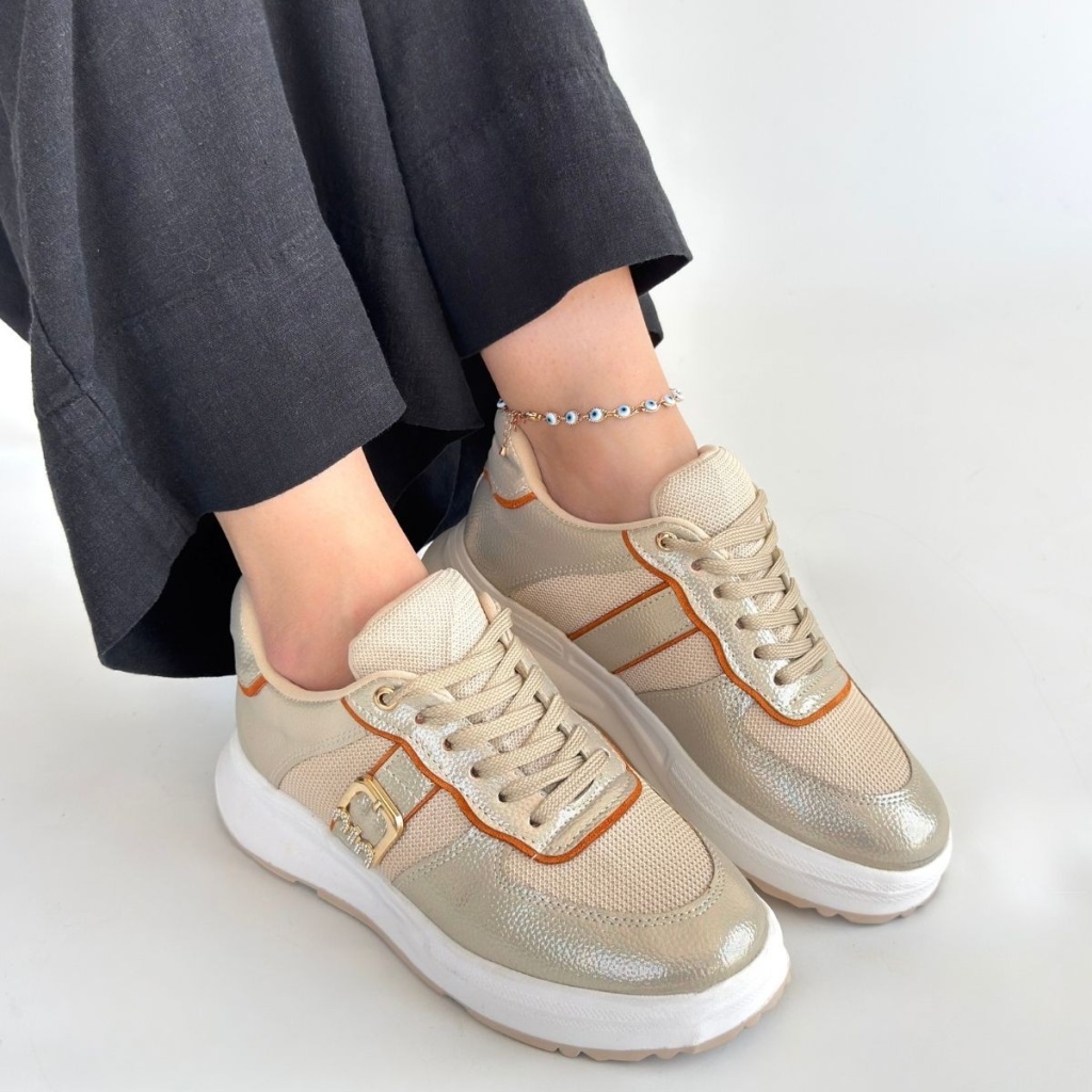 Tanwe Bej Cilt Bağcıklı Spor Ayakkabı -