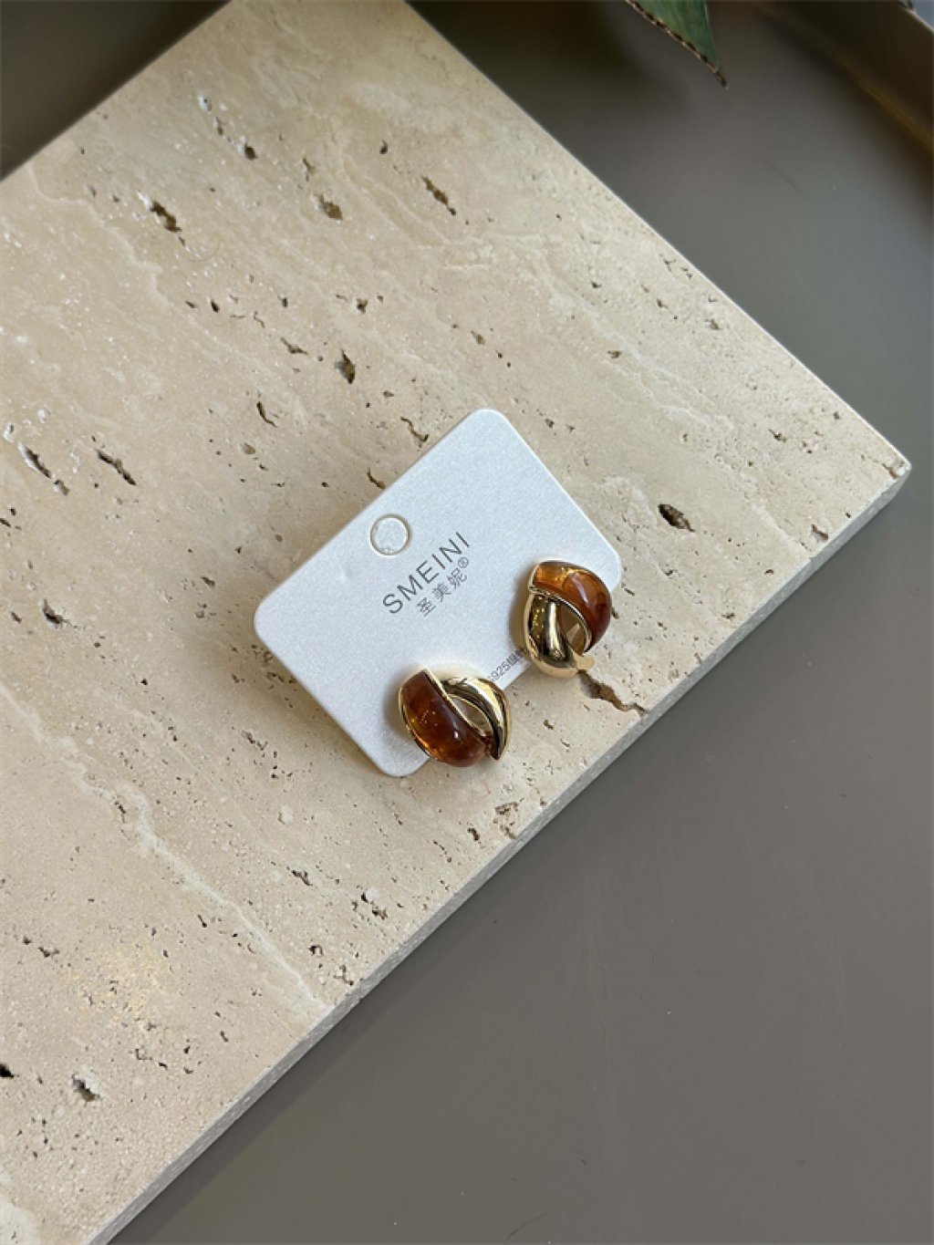 Taşlı Küpe - Kahverengi