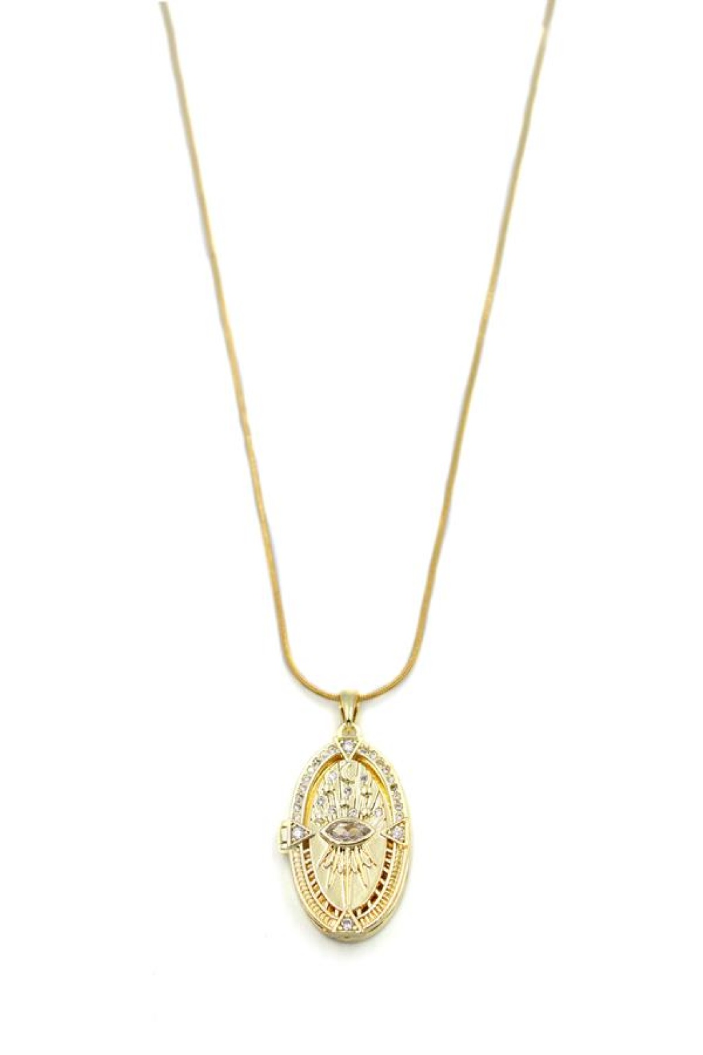 Taşlı Oval Göz Kolye - Altın