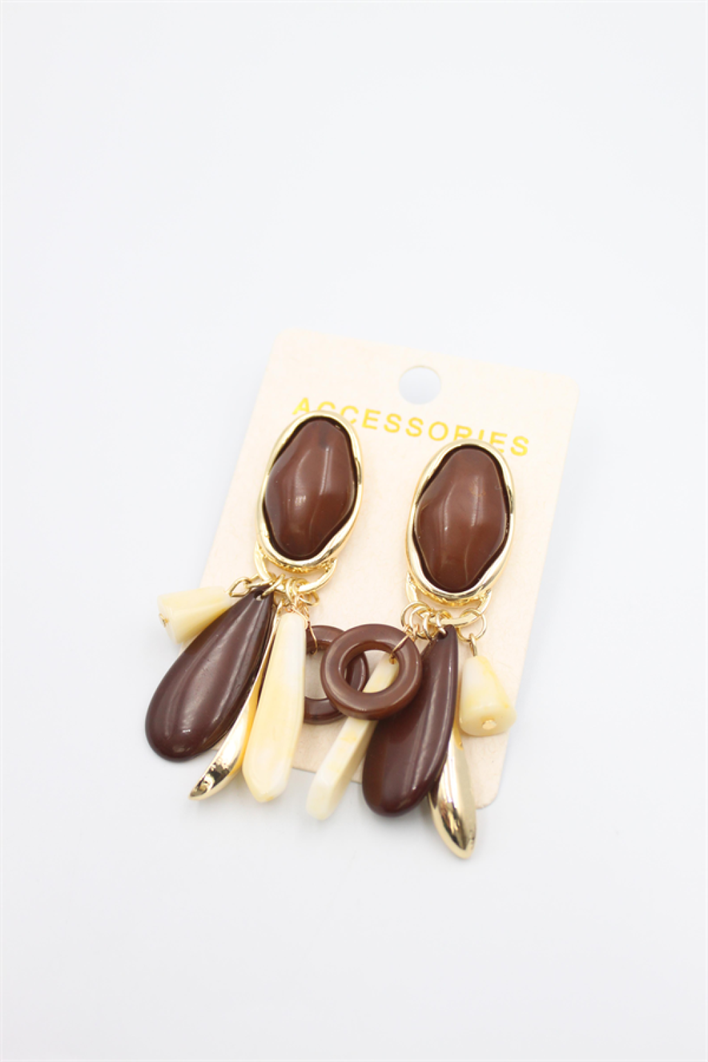 Taşlı Sallantılı Küpe - Kahverengi