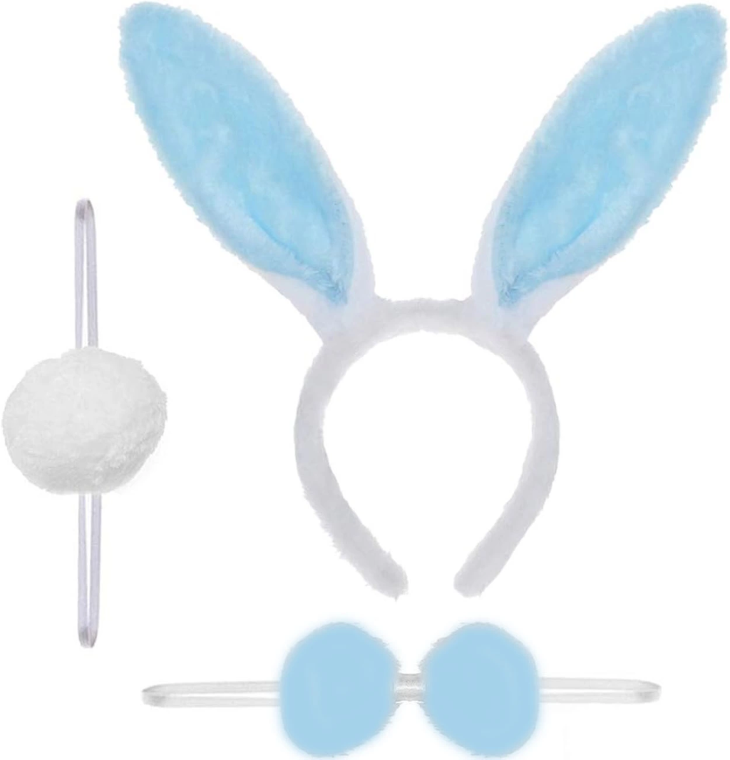 Tavşan Kostüm Seti Taç Papyon Ponpon Kuyruk Mavi -
