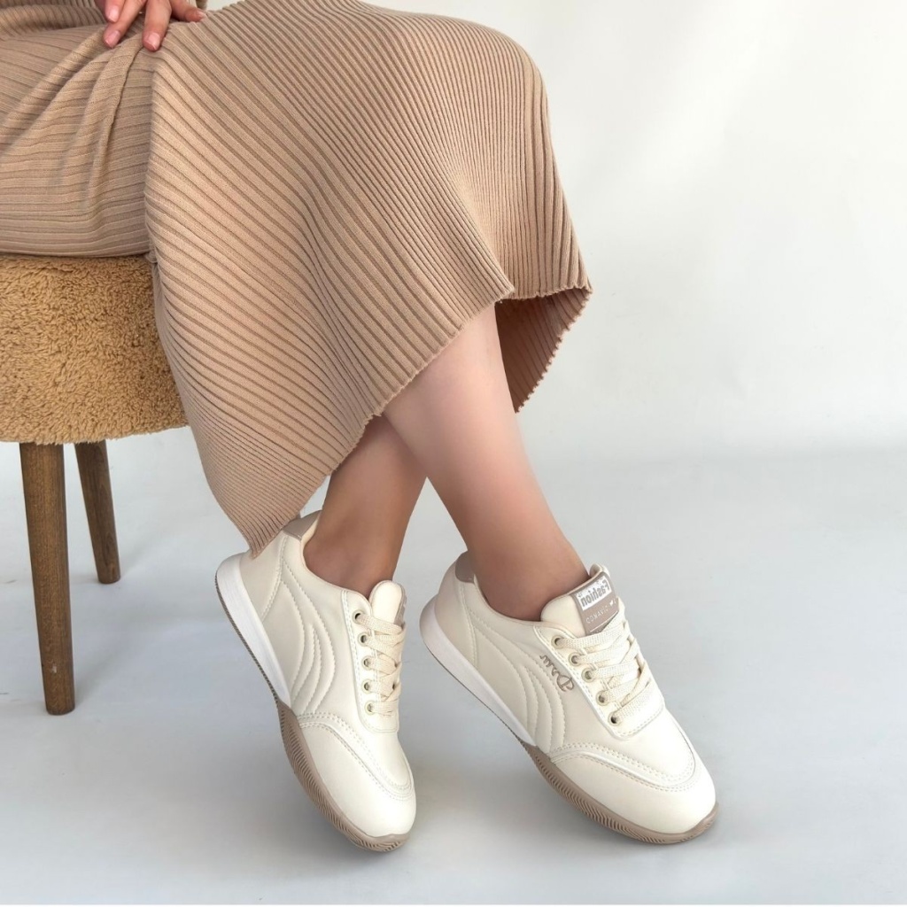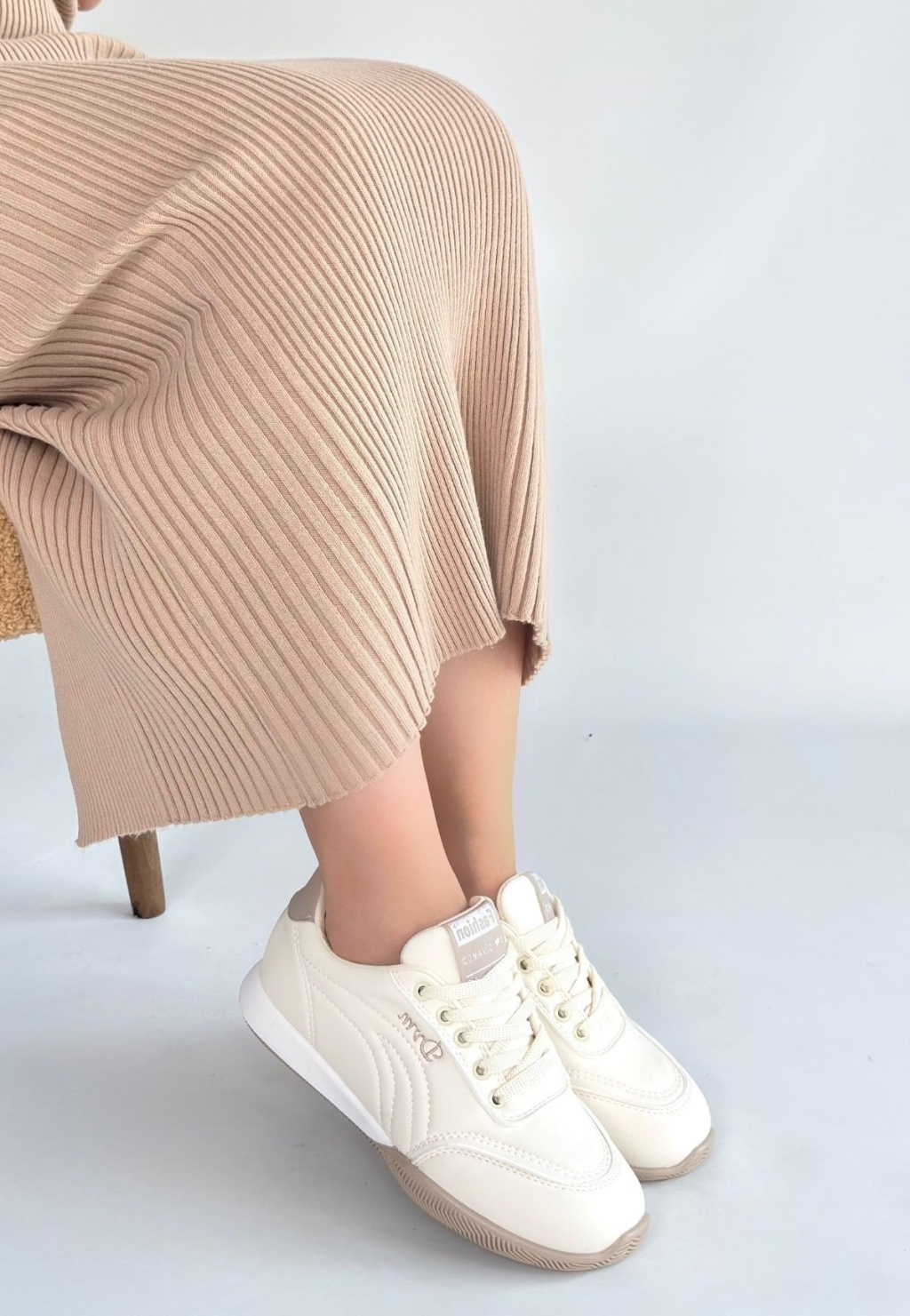 Tawen Bej Cilt Bağcıklı Spor Ayakkabı -