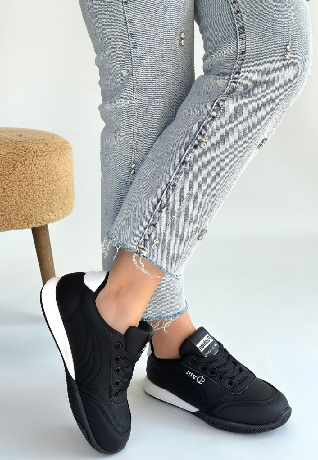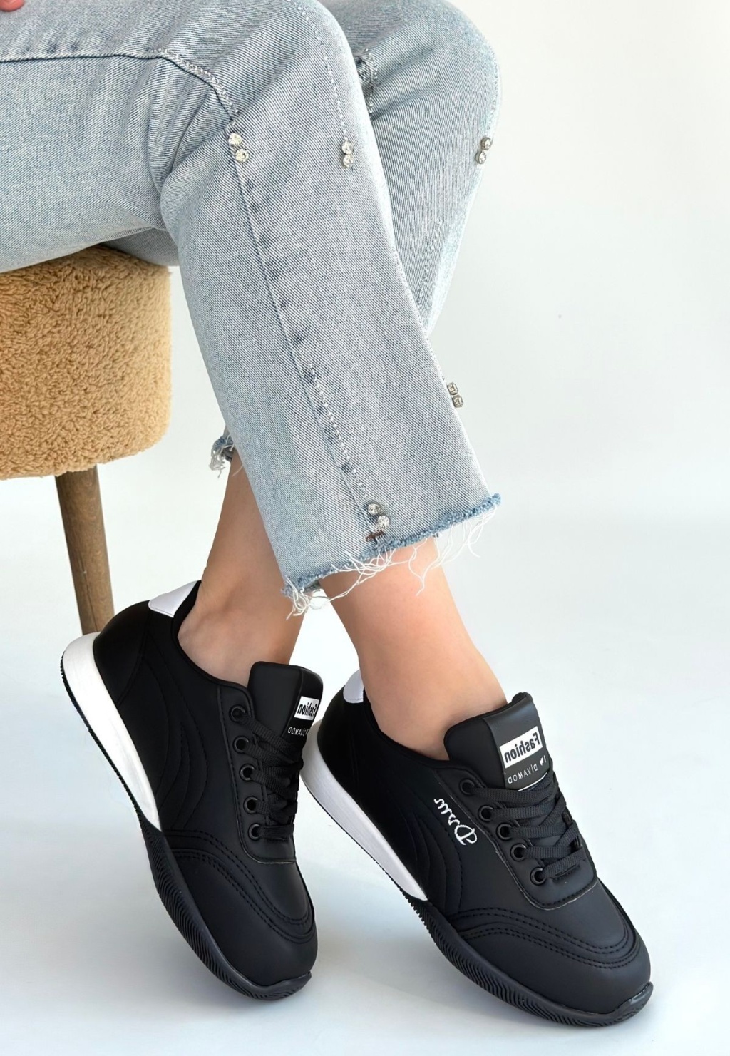 Tawen Siyah Cilt Bağcıklı Spor Ayakkabı -