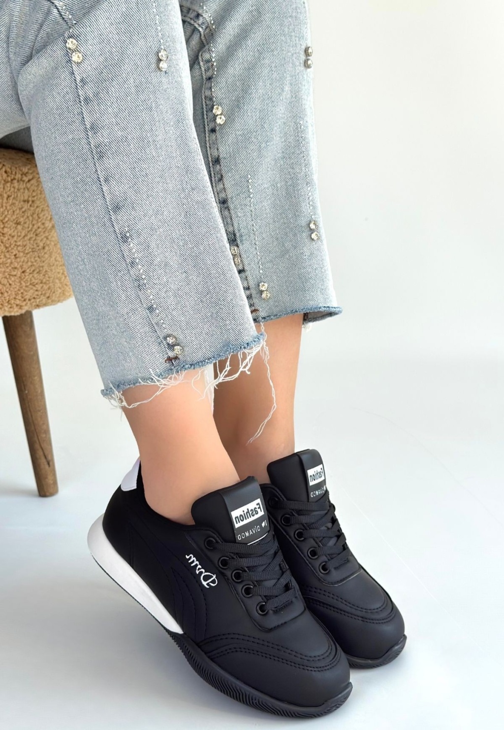 Tawen Siyah Cilt Bağcıklı Spor Ayakkabı - Lisinya