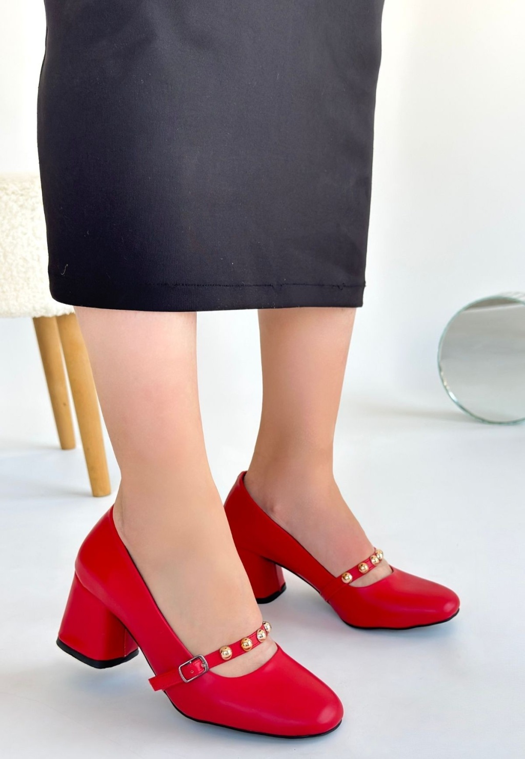 Renk: KırmızıDetay: TopukluMalzeme: CiltTopuk Boyu: 7 CmTaban Materyali: Jurdan TabanKalıp: Standart Ayak Ölçülerine Göre Tam Kalıp