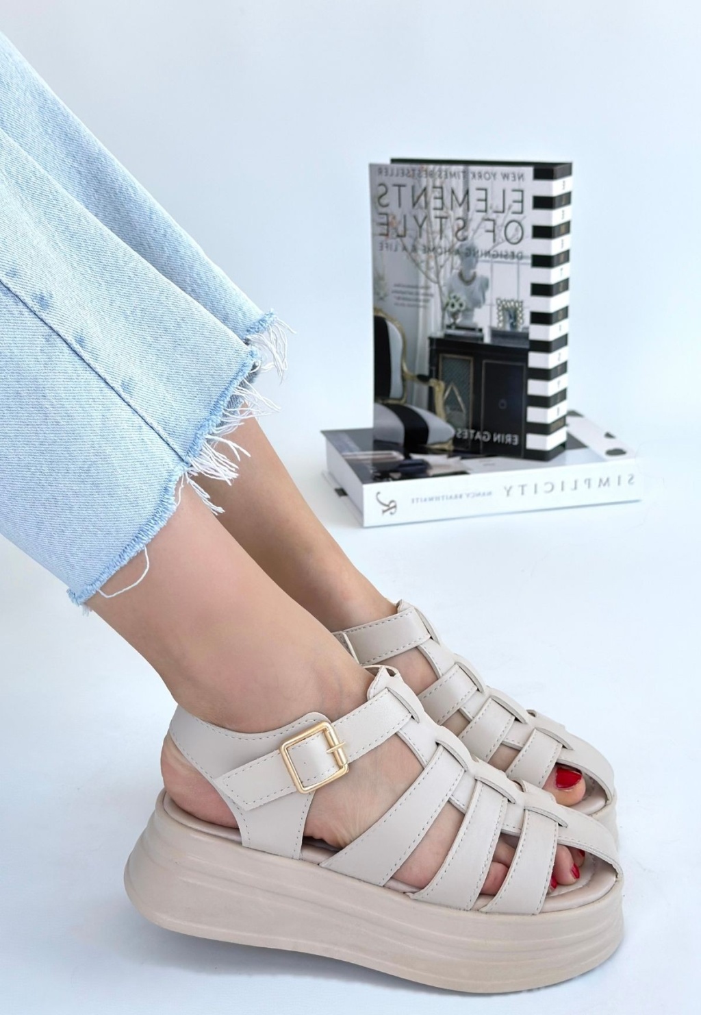 Toten Bej Cilt Kemerli Sandalet -
