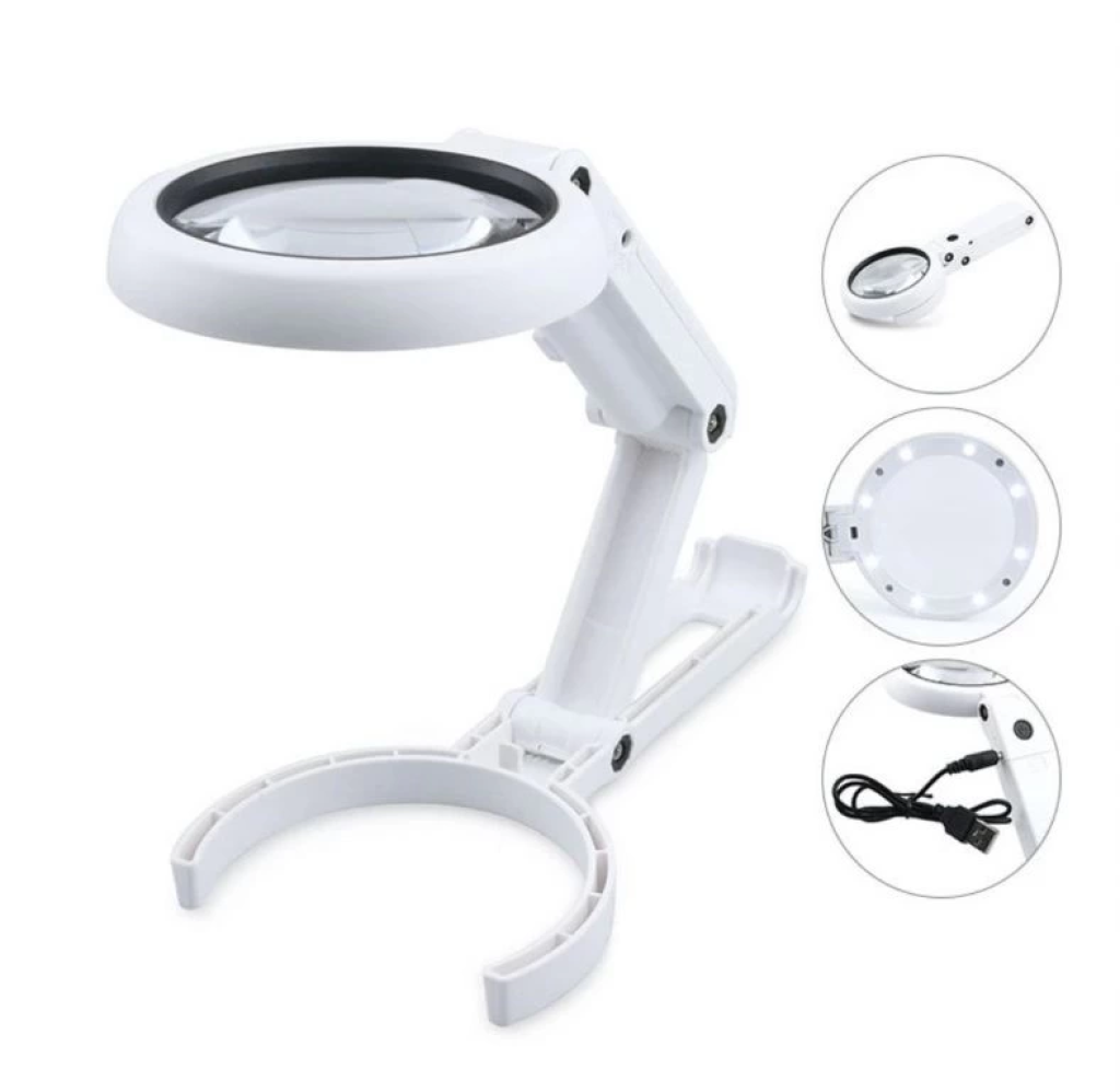 Usb Şarj Edilebilir Katlanabilir 3.510x Büyüteç 8 Ledli Masa Ve Eliçin Taşınabilir Büyüteç Fs90rc -