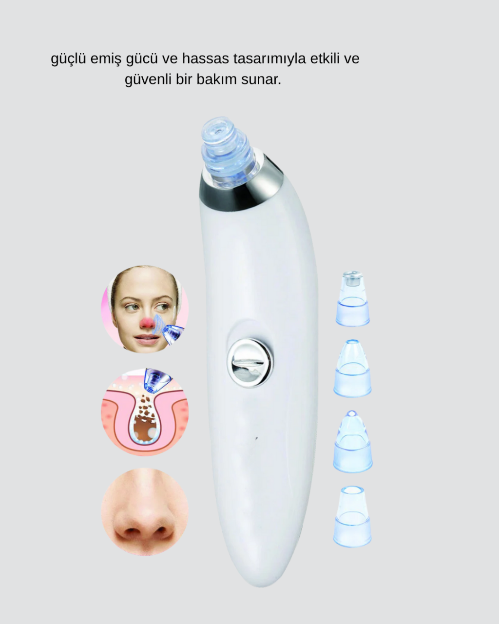 Vakumlu Siyah Nokta Temizleme Cihazı – 5 Kademe Güç ve 4 Başlıklı Derin Cilt Bakımı -
