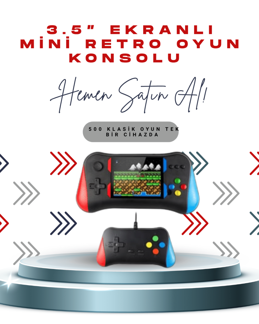 X7M Vintage 3.5 İnç 500’ü 1 Arada Klasik Oyun Konsolu -