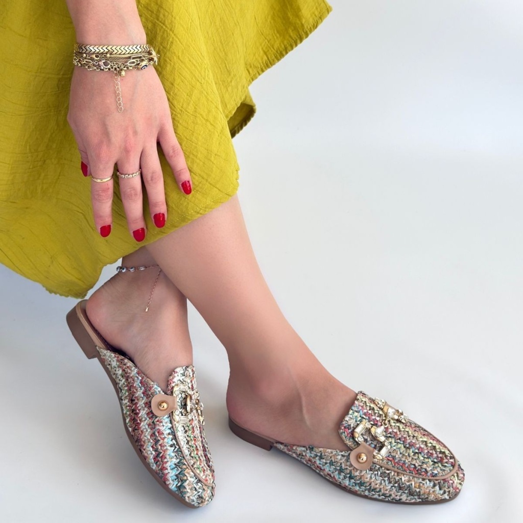 Yenda Renkli Dokumalı Terlik -