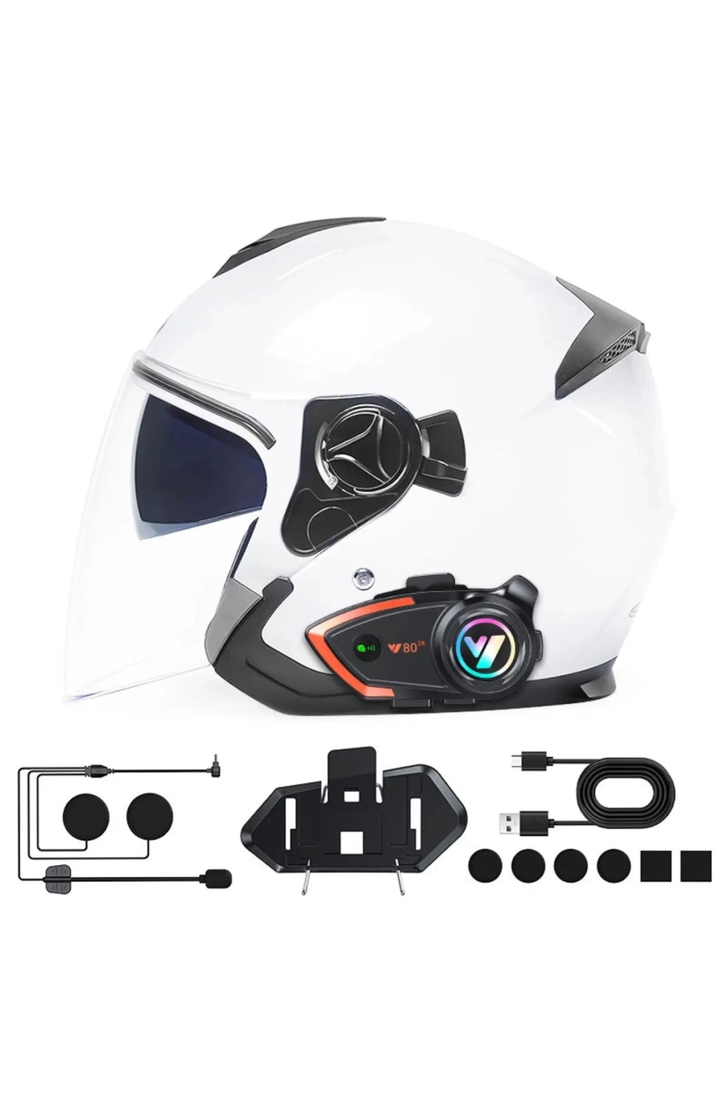Yeni Model Y80-2X Motosiklet İntercom 2 Kişilik Bağlantı RGB Işıklı Bluetooth Kulaklık SetiÖzellikler:Pil: 1000mAhBT Versiyonu: 5.3VBT Mesafesi: 10metreİntercom: 2 kişi bağlantıIntercom mesafesi: 800mtÇalışma süresi: 32 saatSu Geçirmezlik Seviyesi: IPX6Paket İçeriği: Y80-2X, Kulaklık mikrofon seti, Aparatlar, Şarj Kablosu, Kullanım Kılavuzu. Ürün Markası: Lisinya