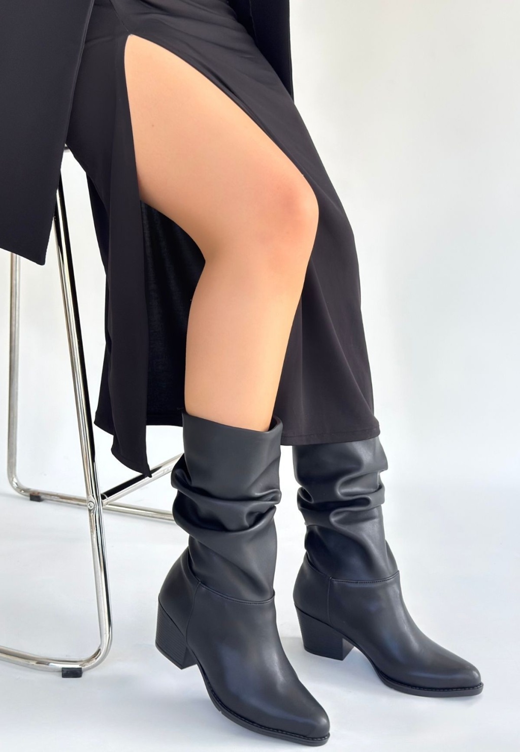 Yior Siyah Cilt Topuklu Bot -