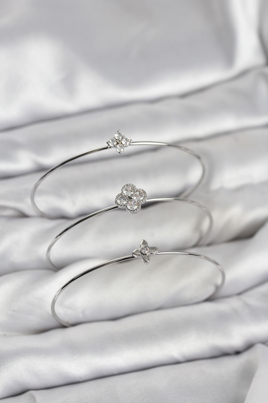 Gümüş Renk Yonca Model Zirkon Taşlı 3'lü Kadın Bileklik Kombini -