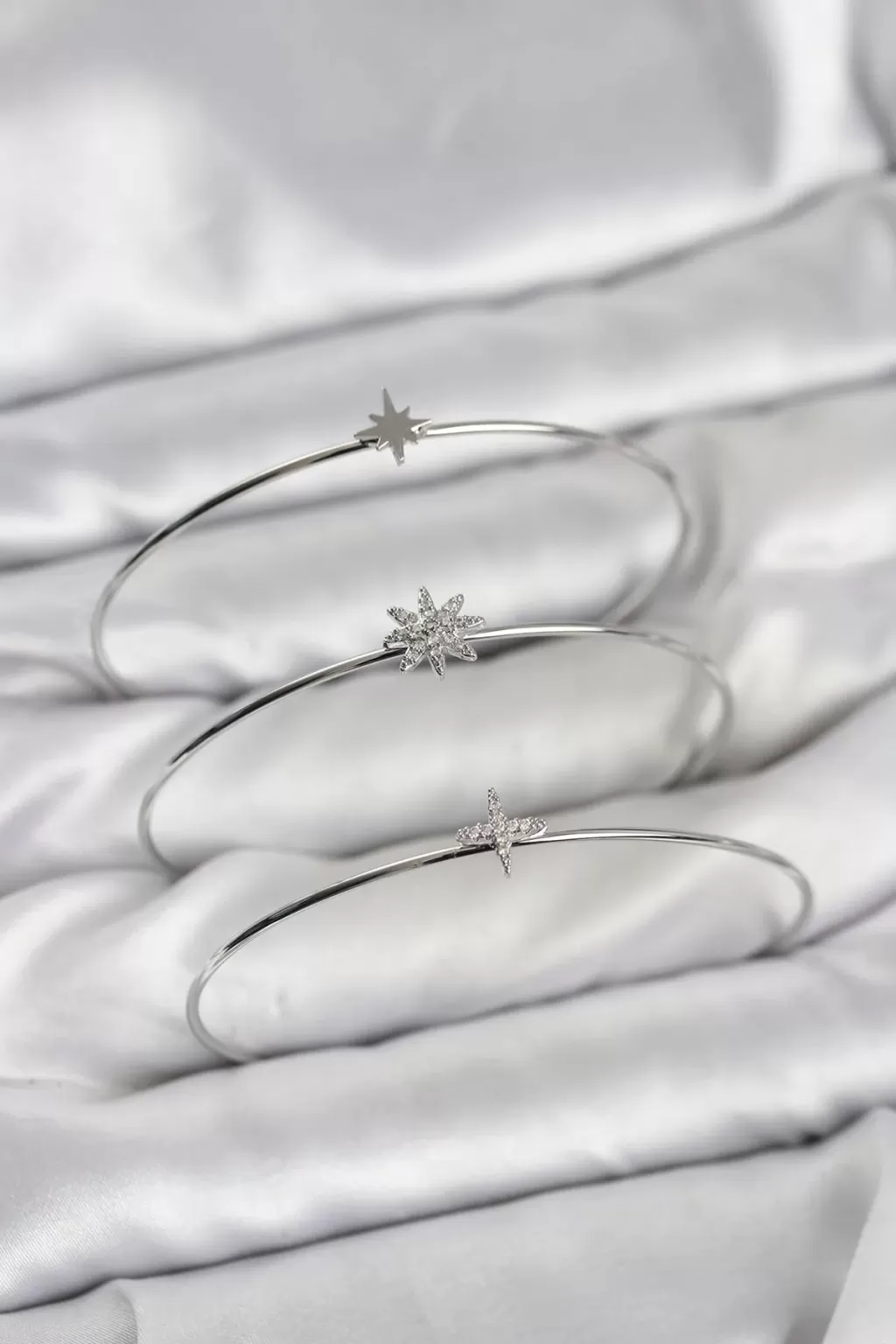 Zirkon Taşlı Kutup Yıldızı Model Gümüş Renk 3'lü Kadın Bileklik Kombini